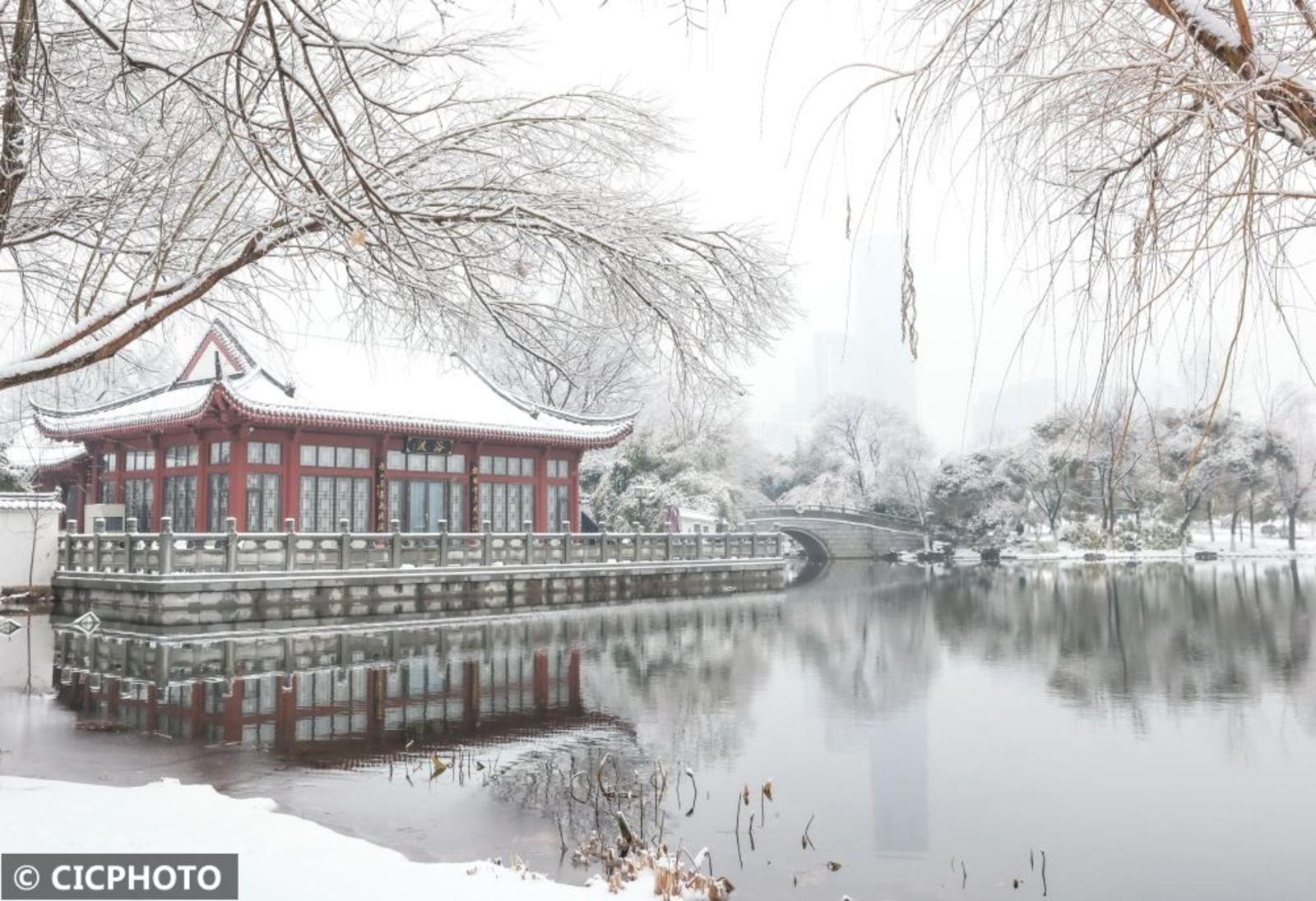 ↑2024年2月4日在湖北省武汉市沙湖公园拍摄的雪景。CICPHOTO/赵军 摄