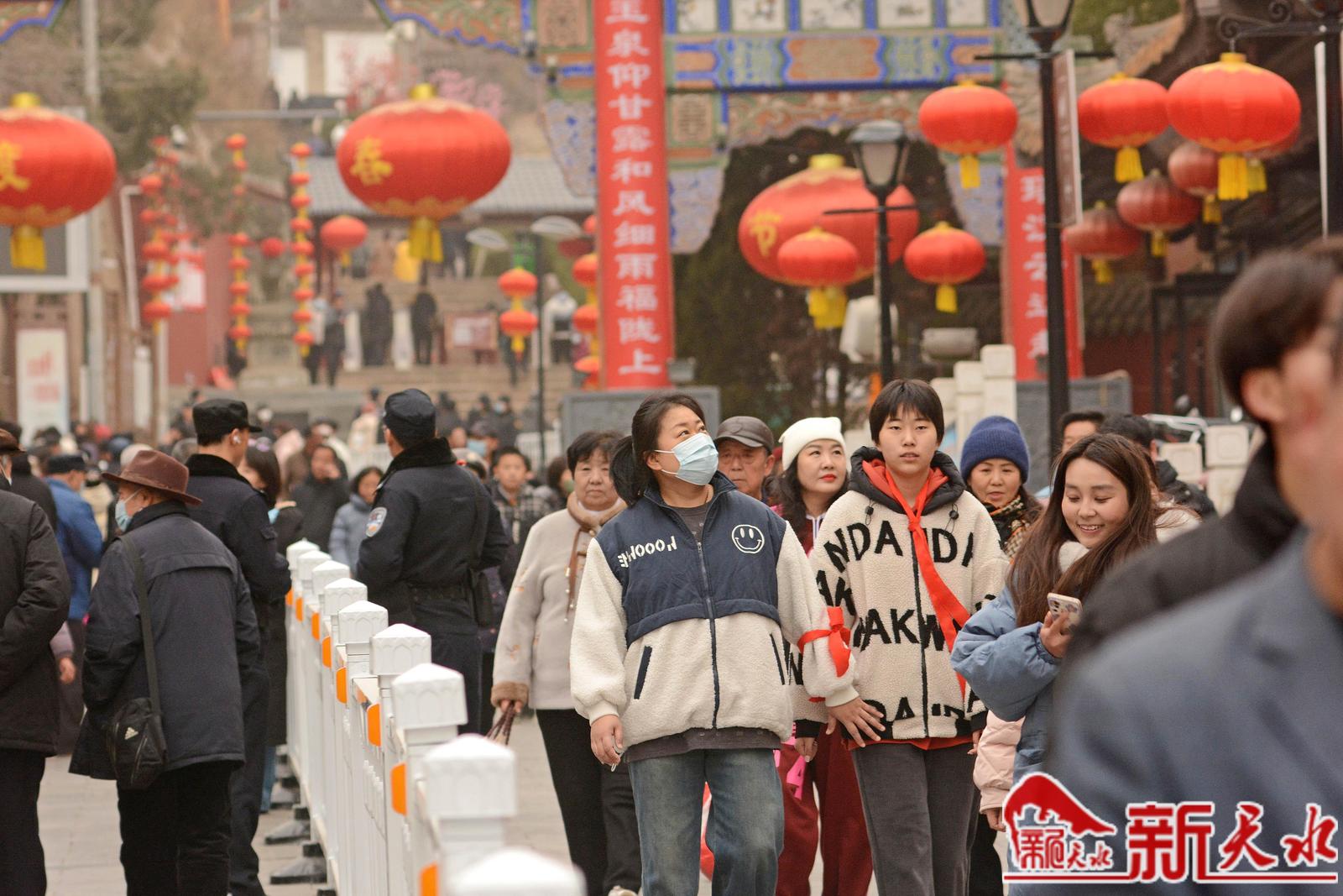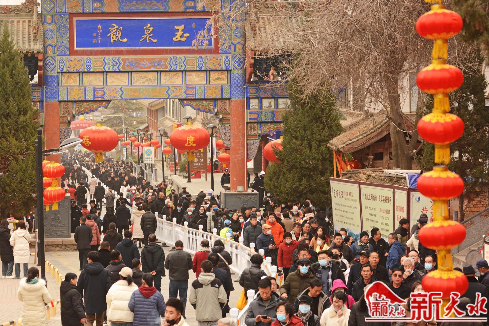 2月18日,农历正月初九,秦州区玉泉观“上九会”热闹喜庆。天水市民们登上秦州区城北天靖山玉泉观,系红绳、摸香炉、猜灯谜、祈福平安吉祥。“上九朝观”是天水人春节期间必不可少的年俗,每年正月初八、初九两天都有数以万计的民众前来。 为确保玉泉观2024年“上九会”游园活动安全有序进行,今年“上九会”游园活动分为两天,分别为2月17日(农历正月初八)8:00—18:00;2月18日(农历正月初九)8:00—18:00。活动现场实行单行道游园路线。活动期间实行免票惠民政策。