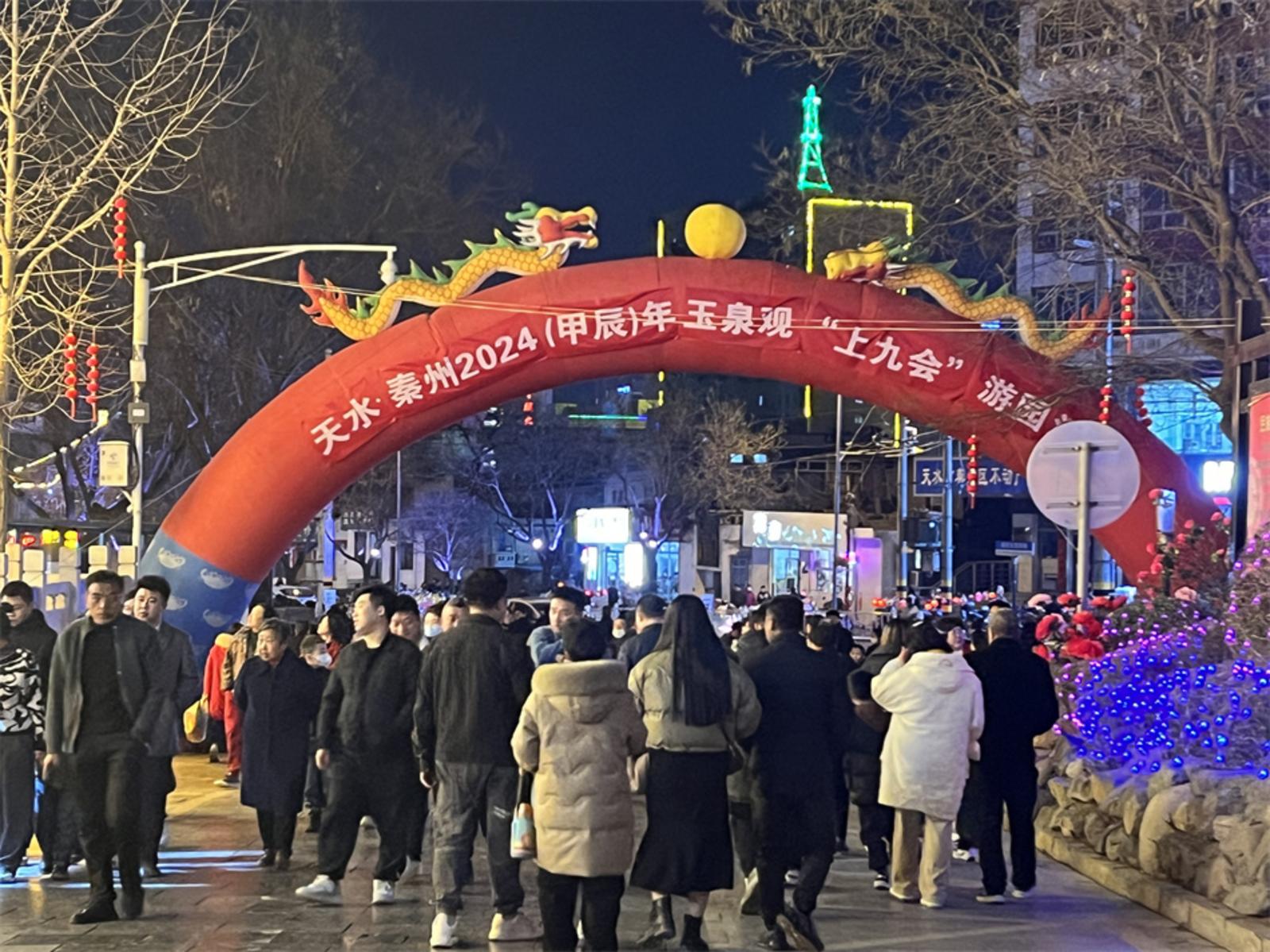 新天水讯 据秦州区融媒体中心消息 龙腾华夏,福临秦州!2024(甲辰)年玉泉观“上九”会如约而至,“龍”重登场,于2月17日早8时盛大开幕,2月18日晚6时圆满落幕。此次朝观活动依然实行免票优惠,采取“预约、错峰、限流”措施分时分段入园,多家单位大力支持配合,指挥部办公室多方联动、全力以赴、安全有序完成了“上九”会期间各项工作任务,累计接待14.8万人次登山朝观,祈福纳祥。
