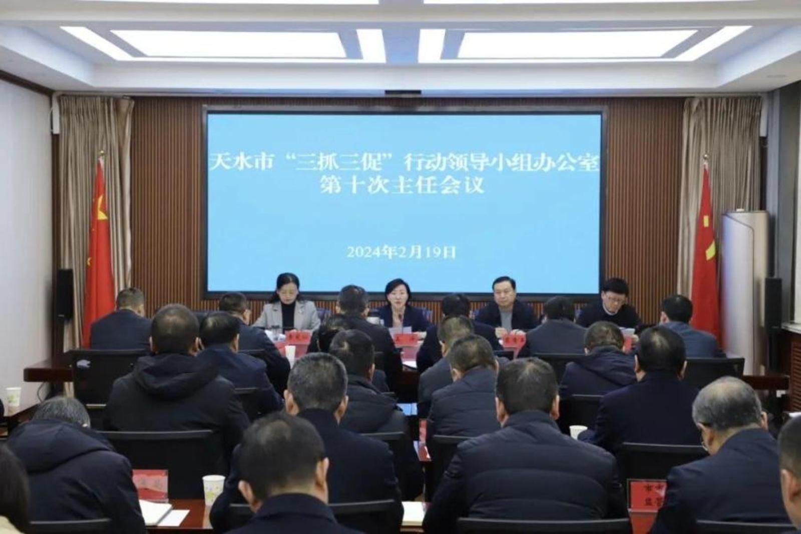 2月19日下午,天水市“三抓三促”行动领导小组办公室召开第十次主任会议,传达了全省“三抓三促”行动推进会议精神,研究谋划全市常态化纵深推进“三抓三促”行动具体措施。市委常委、市纪委书记、市“三抓三促”行动领导小组办公室主任王洋出席会议并讲话。