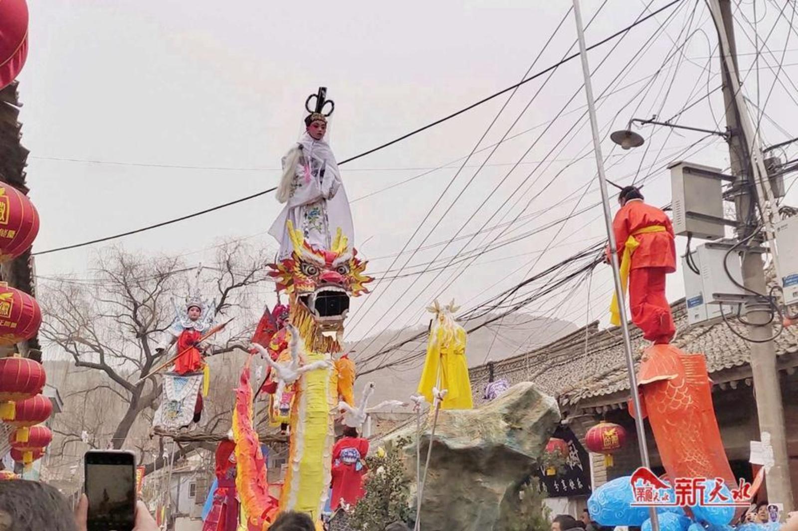 当日上午10时许,街亭村人头攒动,整个街道锣鼓喧天、龙飞狮舞,洋溢着欢乐喜庆的节日氛围,浓浓的年味扑面而来。参加社火表演的队员们身着盛装,用最具年味的传统艺术表演向广大群众送上节日的问候。