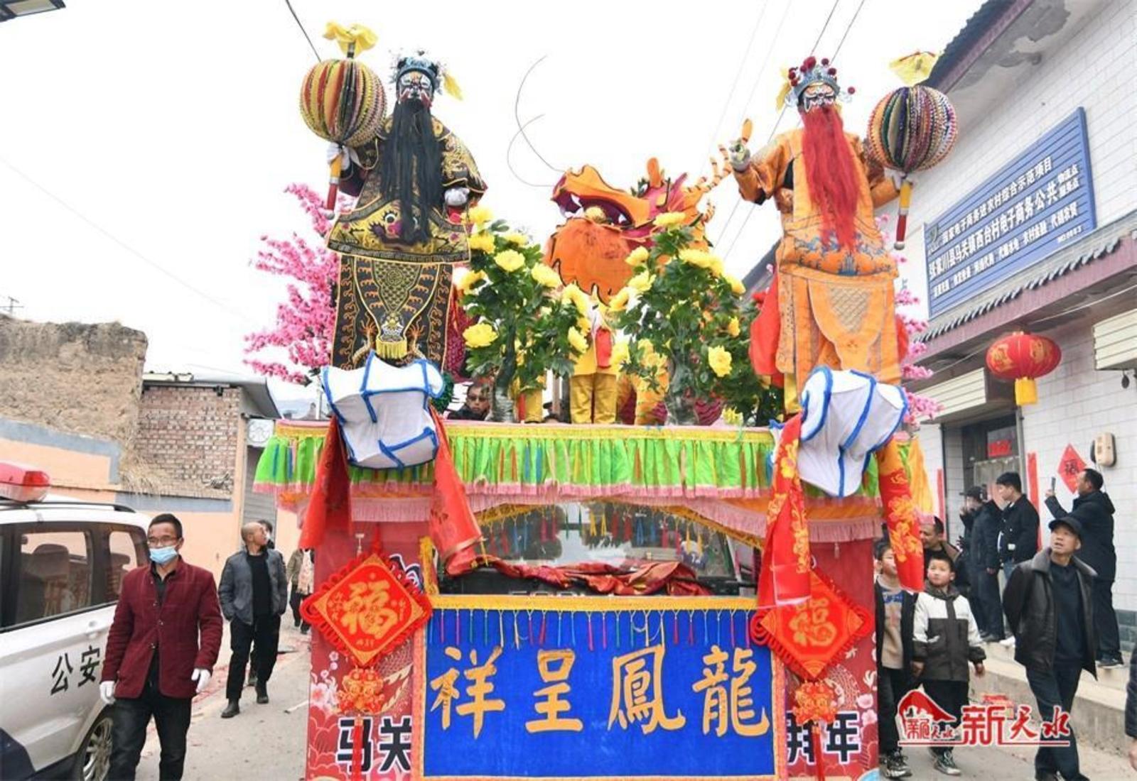 新天水讯【特约通讯员窦耀辉 通讯员窦艺】龙腾狮舞歌盛世,锣鼓喧天闹新春。2月17日,伴随着响彻云霄的鼓点和铿锵悦耳的铜镲,张家川县马关镇窦家沟社火在西台村精彩上演。