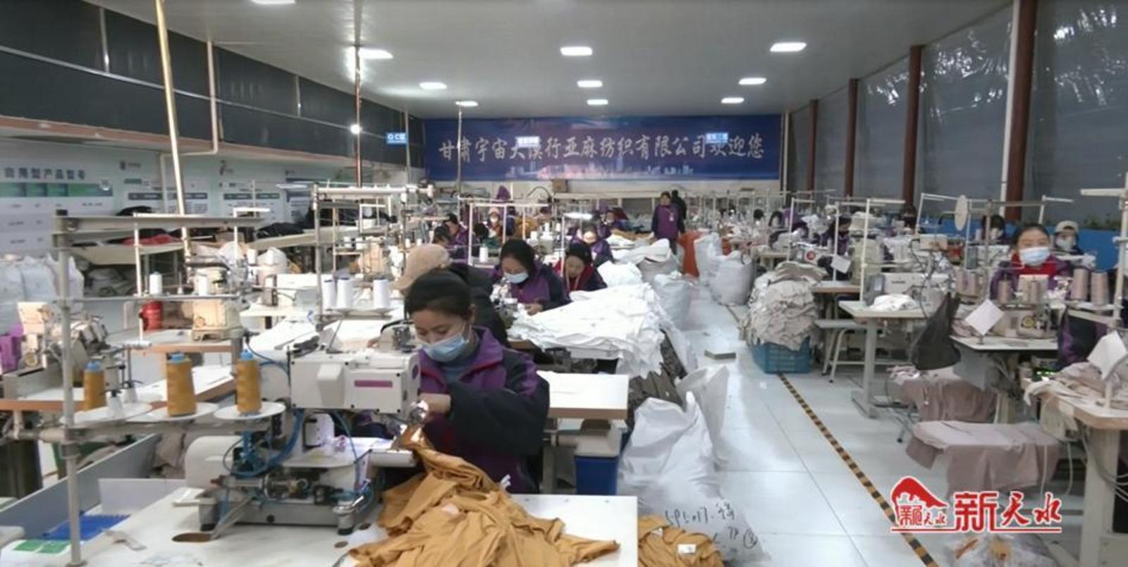 在甘肃宇宙大漠行亚麻纺织有限公司,笔者看到,生产车间内机声隆隆,各条零部件生产线正火力全开,工人们以饱满的热情迅速投入到新一年的工作中,娴熟地操作机器,秩序井然。该公司负责人鲍玉强说:“我们工厂正月初八已经开始上班,现在订单也很充足,生产的圆领衫是保罗品牌,三四月份李宁品牌服装也会上线。”