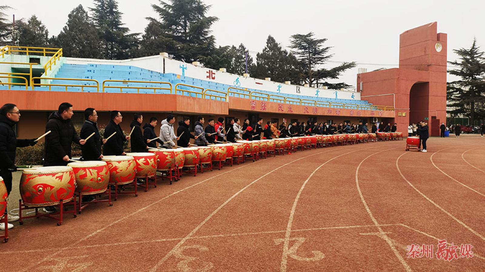 同时,由秦州区教育系统抽调的56名体育教师进行的击鼓表演也在同步排练中,大家配合默契,鼓声雄壮激昂、铿锵有力。