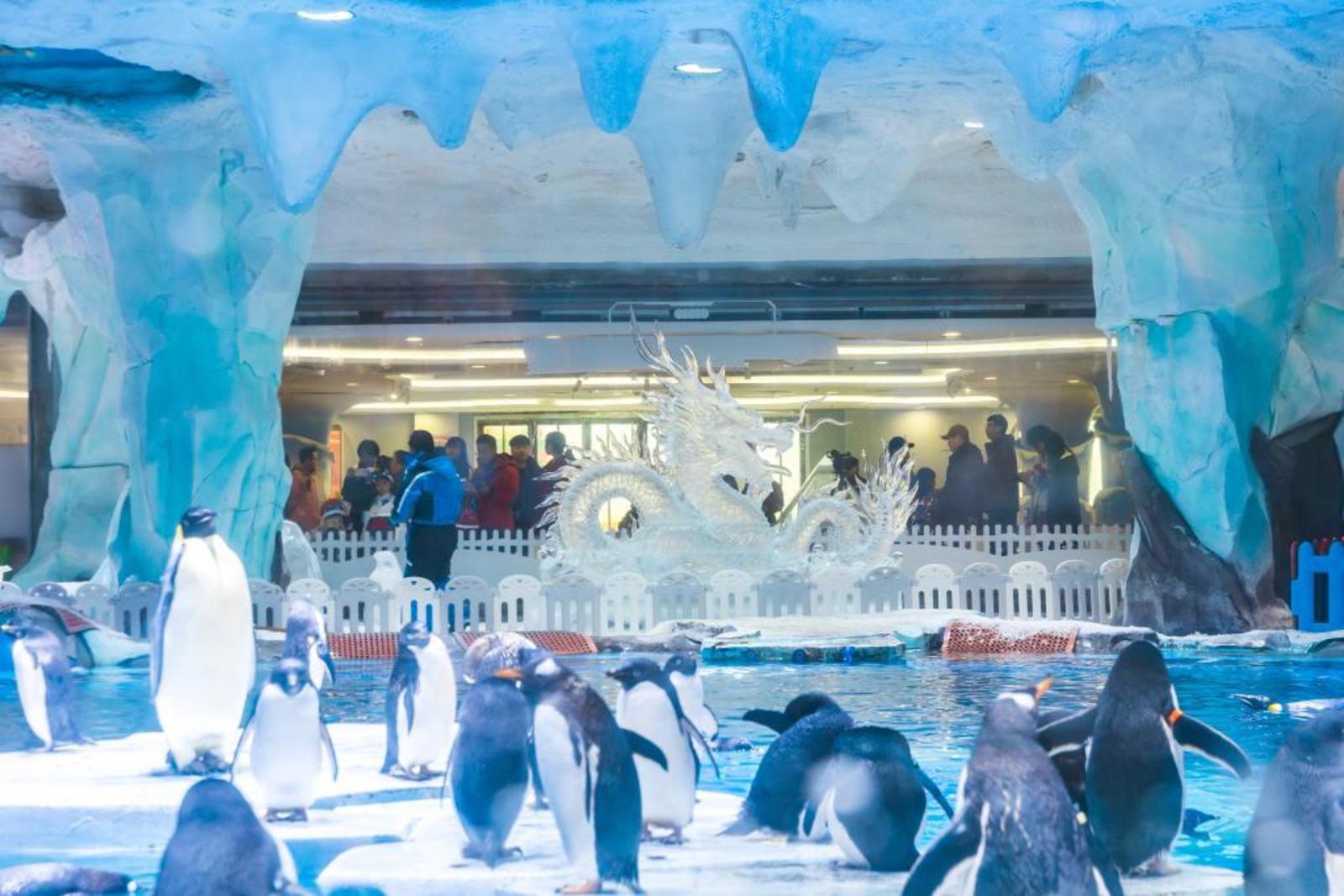 上海海昌海洋公园龙年新春装饰冰雕。(王涛 摄)