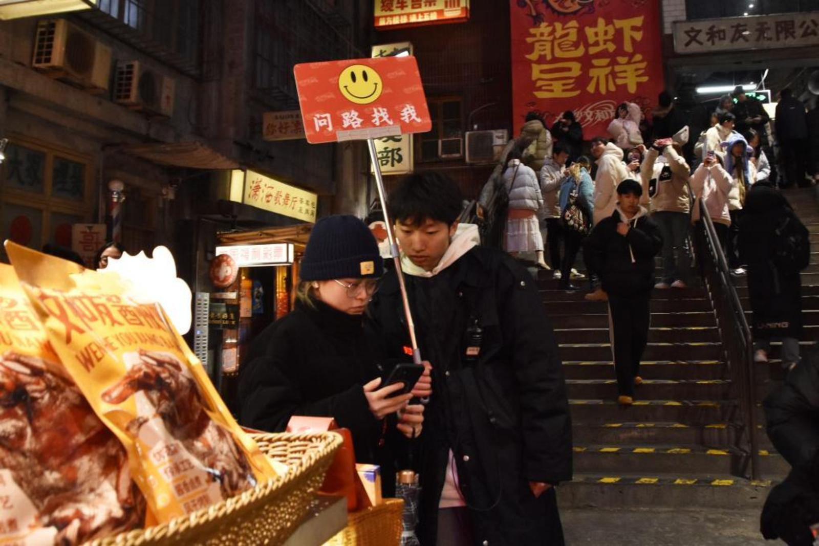 长沙文和友员工为店内顾客提供指路服务。新华社记者白田田 摄