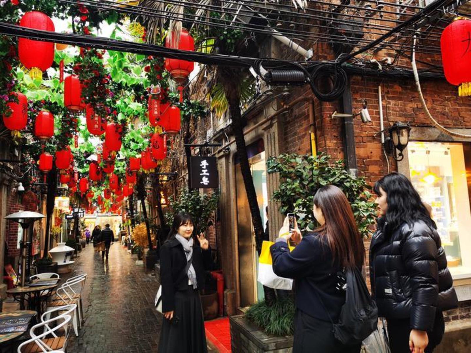 游客在上海田子坊拍照“打卡”。新华社记者陈爱平 摄