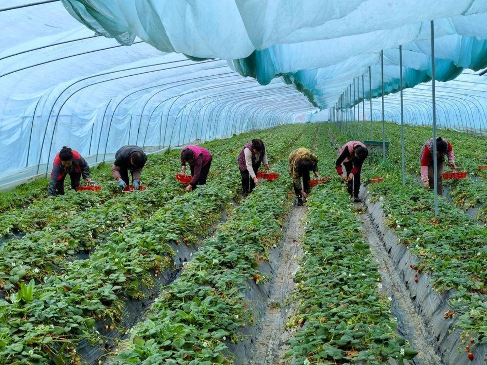 记者了解到,目前,草莓温室大棚正运用滴灌技术为草莓进行浇水、施肥,以确保水肥平衡和温度调控。同时,工人们还需要为草莓进行修剪,除去残枝和杂草,助力春季草莓茁壮成长,抵御潜在的“倒春寒”威胁。