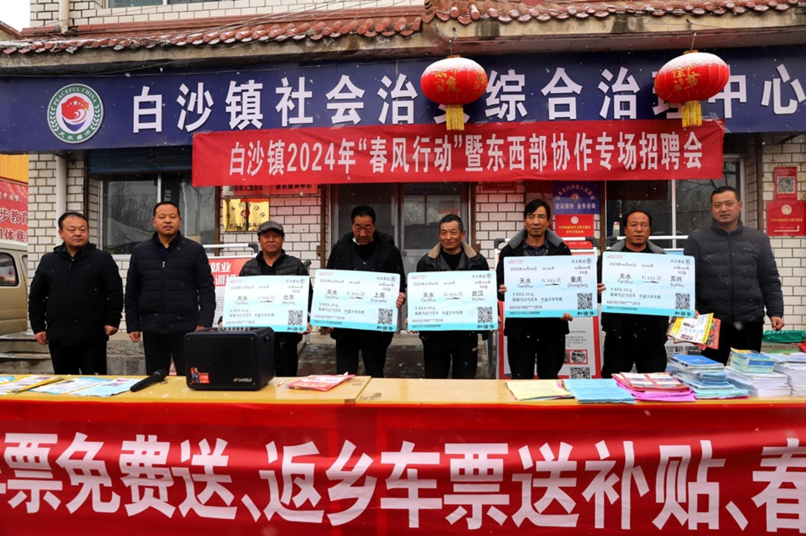 作为集市的“东道主”,白沙镇政府同步开展政策宣传、“春风送岗”等活动,为热闹的集市再添新彩。