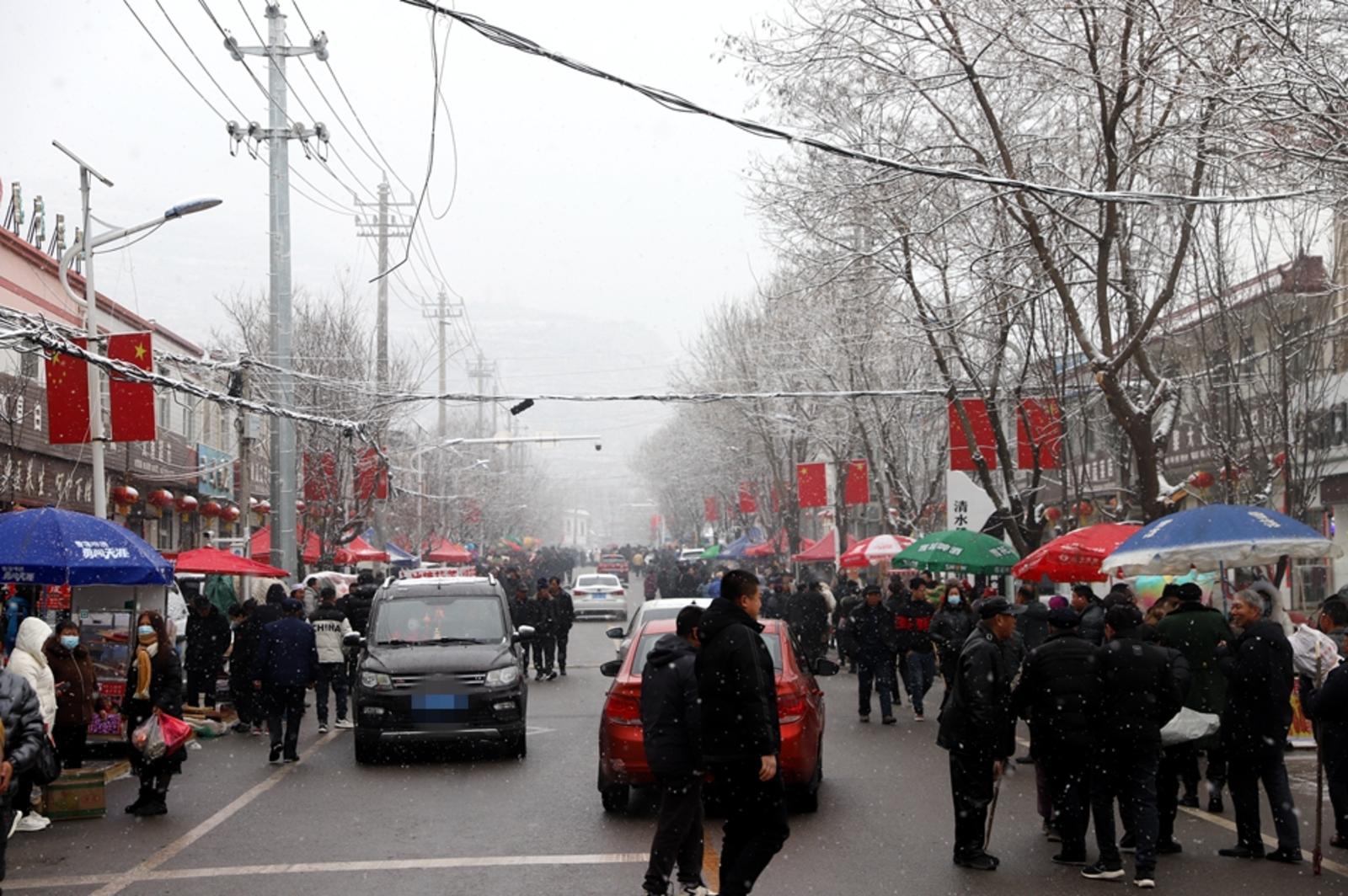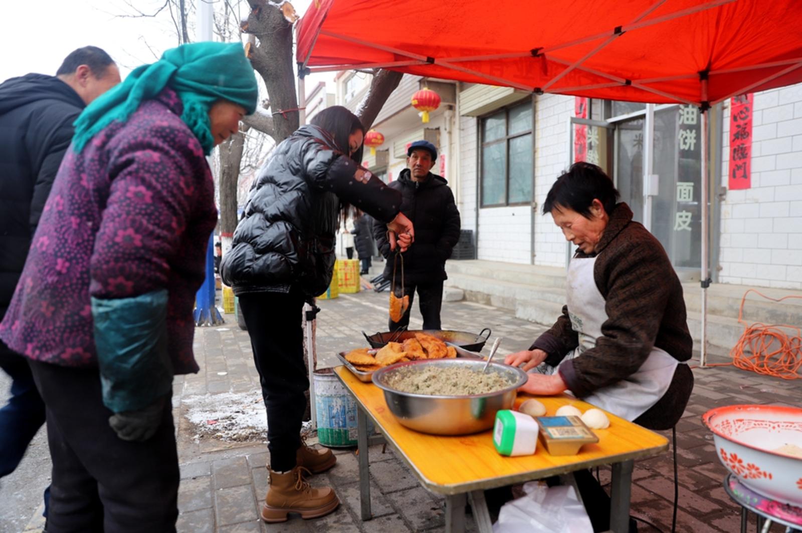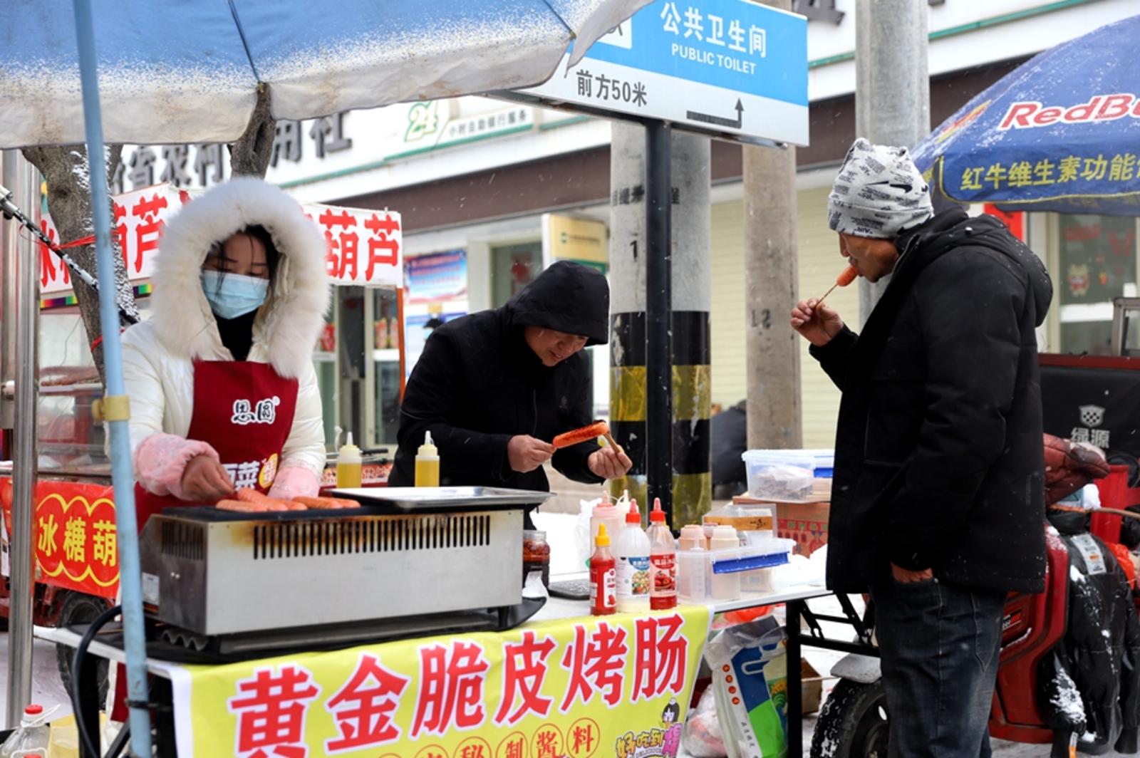 乡村大集是一份记忆,更是一种情结。漫天大雪依旧阻挡不了村民们赶集的热情,叫卖声、吆喝声、谈笑声此起彼伏,各类摊点上摆满了水果、百货、小吃等,货品齐全、琳琅满目。