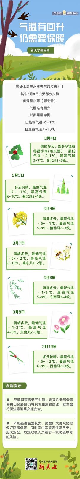 【新天水便民贴】气温有回升 仍需要保暖