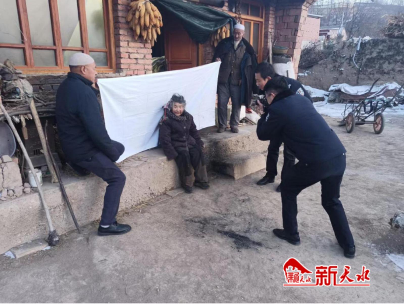 新天水讯【记者王晓华】为了切实解决辖区老年人、残疾人等特殊人群的实际困难,近日,张家川县公安局川王派出所持续开展“百万警进千万家”活动,上门为多名出行不便的老年人采集相片并办理了身份证。