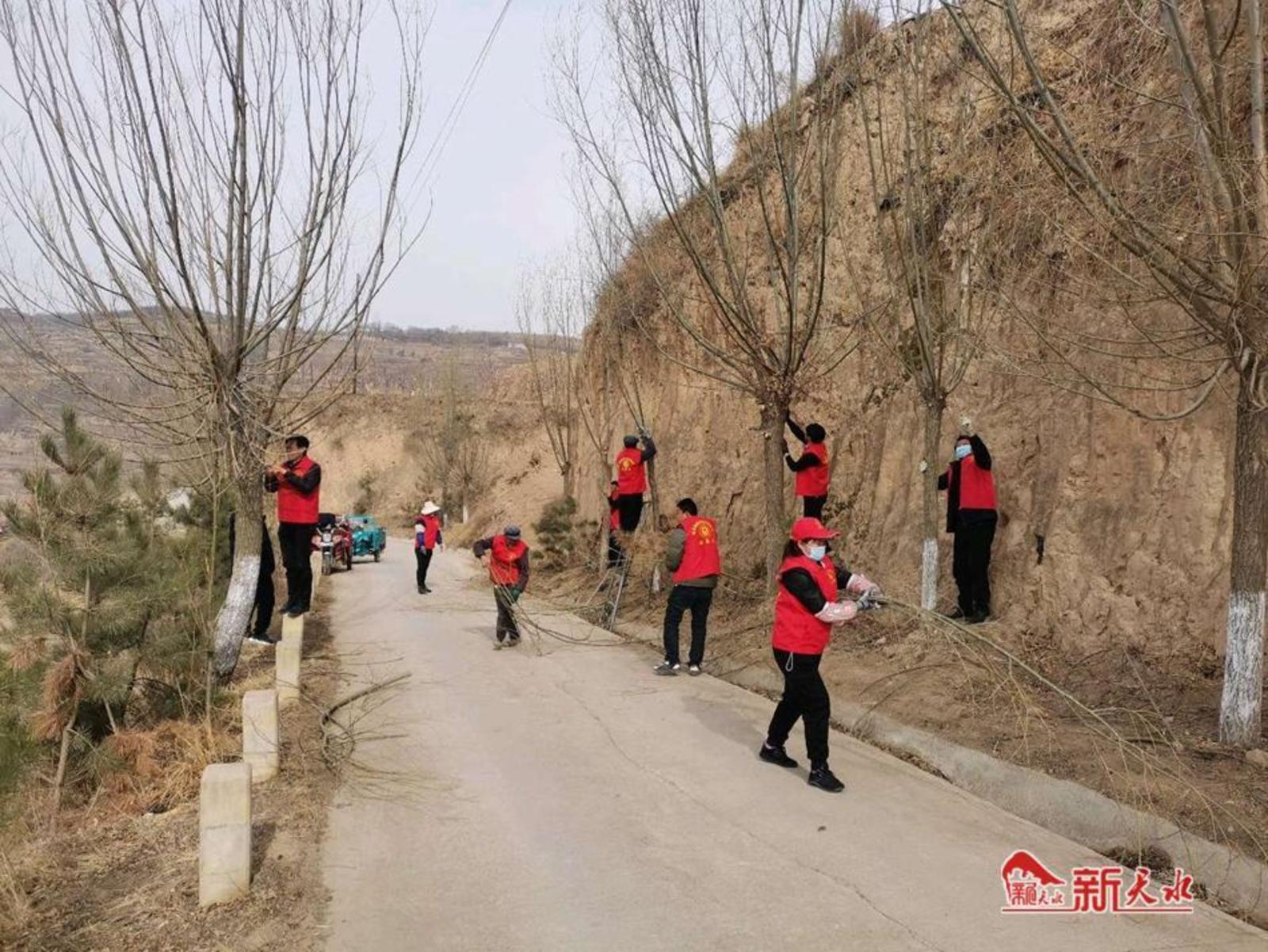 新天水讯 早春三月,风催新绿。连日来,秦安县莲花镇各村组织志愿者开展行道树管护及花卉覆盖行动,用“志愿红”守护“生态绿”,以践行“绿水青山就是金山银山”的生态理念,为美丽乡村播撒希望之绿。