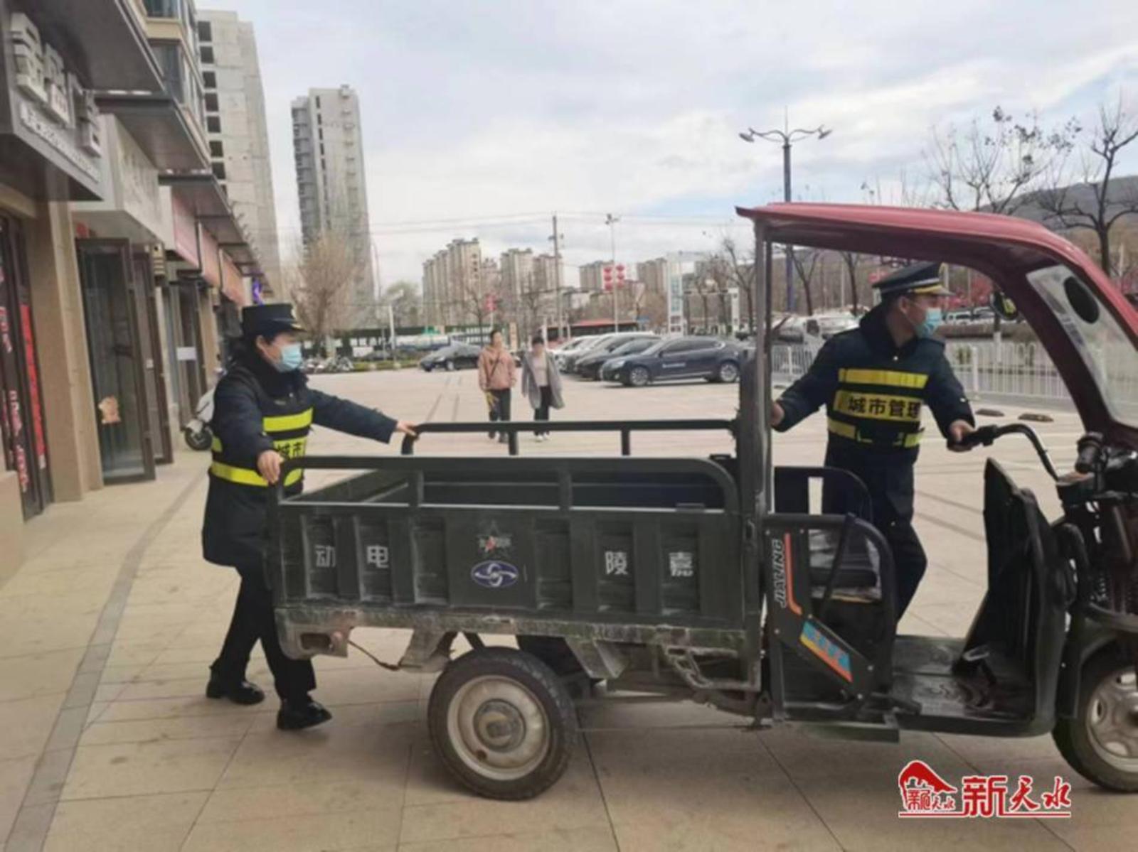 整治中,执法人员采取徒步巡查、错时执法、集中整治等多种形式,对辖区各类不规范户外广告、条幅等进行清理取缔;加大非机动车辆临时停放点的规范管理,对辖区主街道沿街门店前的非机动车停放实行划线管理,对违规停放车辆及时予以督促纠正,引导车主有序停放、文明停车,严禁占压盲道,做到线内存放、朝向一致、规范有序;对辖区建筑工地围挡设置进行排查,对个别工地围挡存在的破损、毁坏及宣传标语缺失等,督促相关工地及时更换、维修,确保市容环境整洁有序。(辛文)