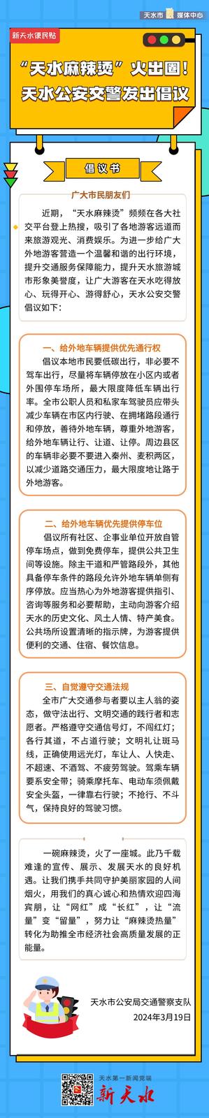 【新天水便民贴】“天水麻辣烫”火出圈!天水公安交警发出倡议