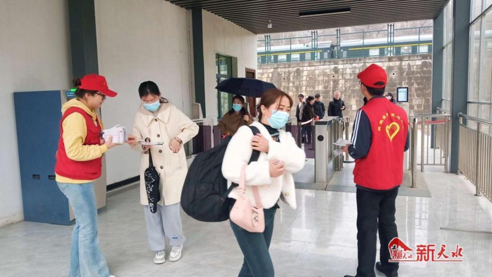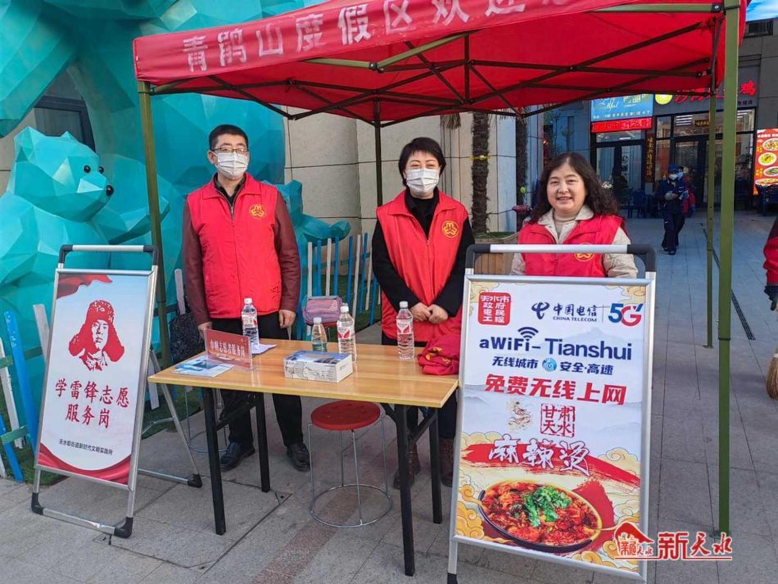 在天水南站志愿者岗亭,罗玉二社区志愿者一会儿化身讲解员,耐心地向游客讲解更加便捷的出行线路,一会儿化身道路交通疏导员,指引帮助游客有序通行,用暖心周到的服务保障来天水的游客体验宾至如归的感觉。东煜广场人流如织,志愿者为大家提供现场咨询服务活动,热情地为大家解答问题和提供帮助,引导游客和行人有序排队和就餐,确保现场秩序井然有序。(刘蓉蓉)
