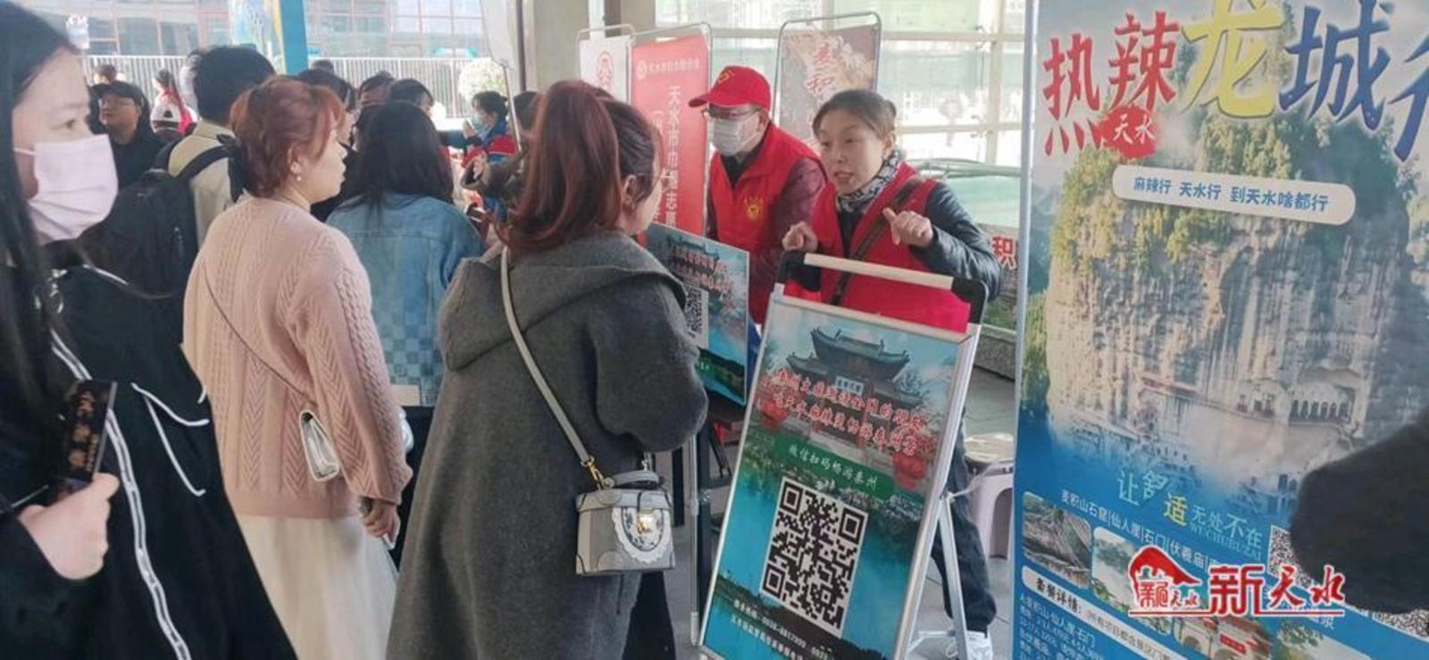 “您好,请问您从哪里来,是来天水吃麻辣烫吗?您可以乘坐1路、6路天水麻辣烫专线,也可以乘坐出租车直达天水古城四合院网红麻辣烫打卡地。”“欢迎大家来天水吃麻辣烫,赏麦积烟雨、拜人文始祖,感受羲皇故里的热情与浪漫,天水欢迎您!”一抹抹“志愿红”穿梭于人潮涌动中,努力做好现场秩序维护,耐心周到地为游客提供路线引导、讲解指引、交通疏导等,热情为游客排忧解难,用实际行动弘扬志愿精神。志愿者都表示:“天水高铁南站是外地游客到达天水的第一站,一定要热情服务好游客,用微笑迎接游客,用真诚留住游客,让游客暖胃暖心畅游天水。”