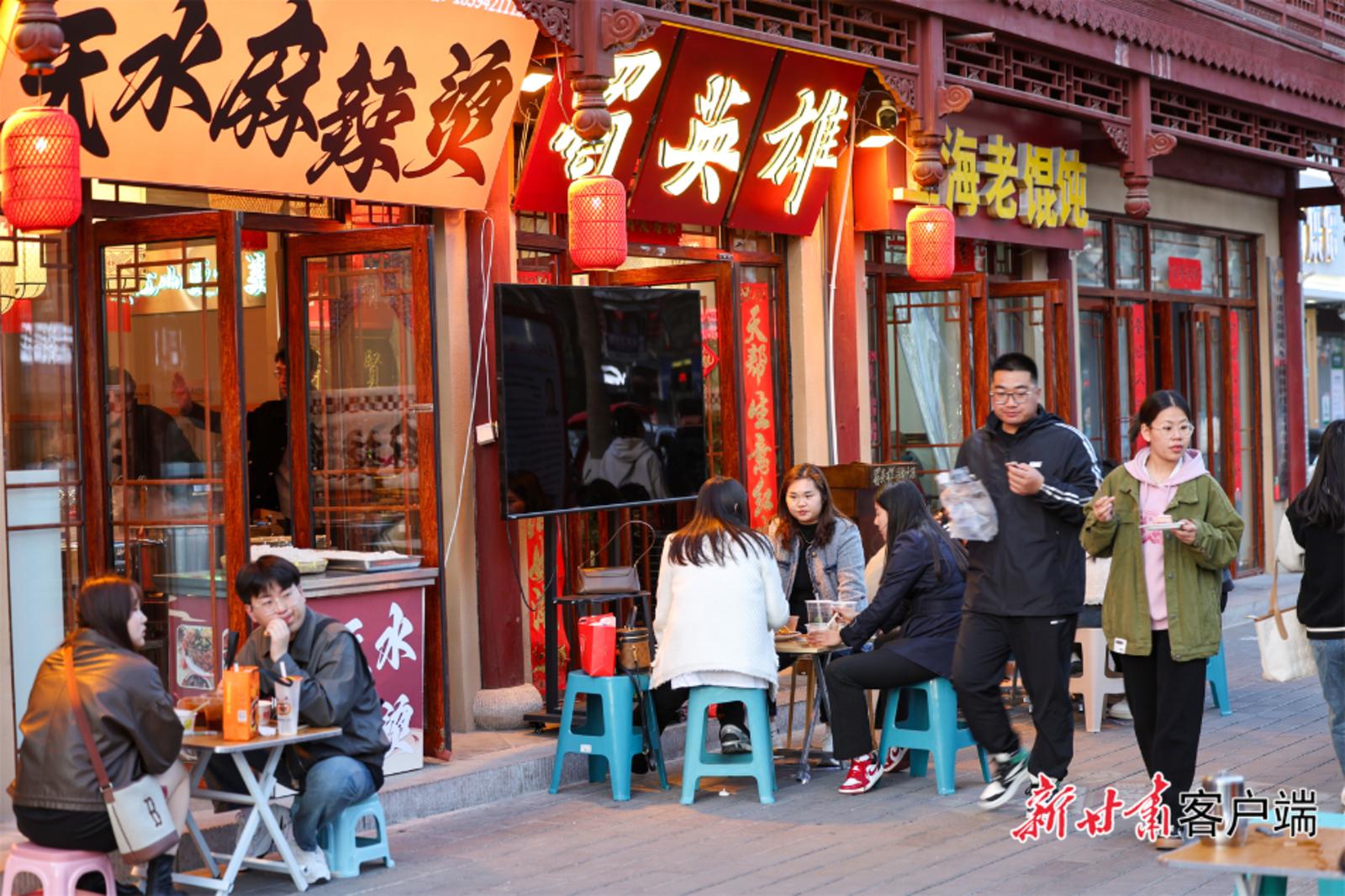 天水城区的美食一条街上,游客众多。新甘肃·甘肃日报记者 冯乐凯