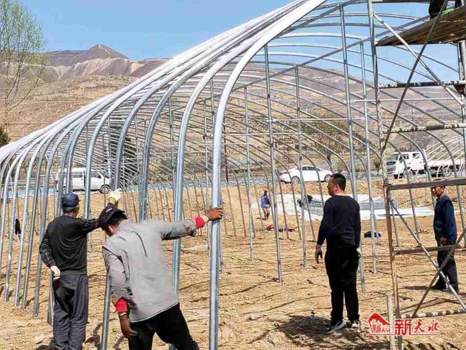 新天水讯 春耕时节,走进省级农民工返乡创业示范基地——武山县禾玉农业开发有限公司的设施农业项目建设基地,只见40多名务工人员正有条不紊地搭建钢架棚,搬运物料、打桩夯土、组装构建,一派热火朝天的劳动景象。
