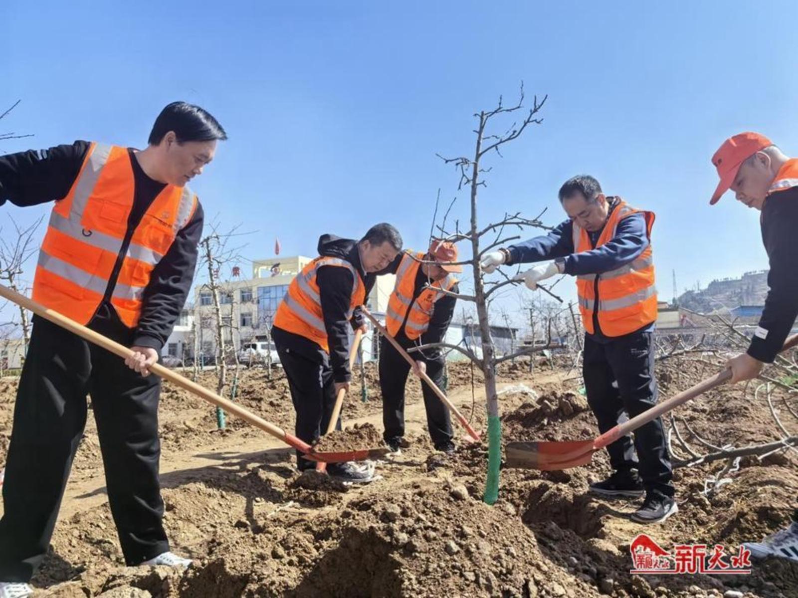 果园植树育秋实。干部职工先后种下了桃树、苹果树、樱桃树、杏树等树苗,大家干劲十足,挥舞着手中的铁锹将土填进树围,种下一锹一锹的希望。随后又对树苗进行整形修剪,促进果树生长发育,使养分更加集中供养果实,为秋天结出好果打下坚实基础。