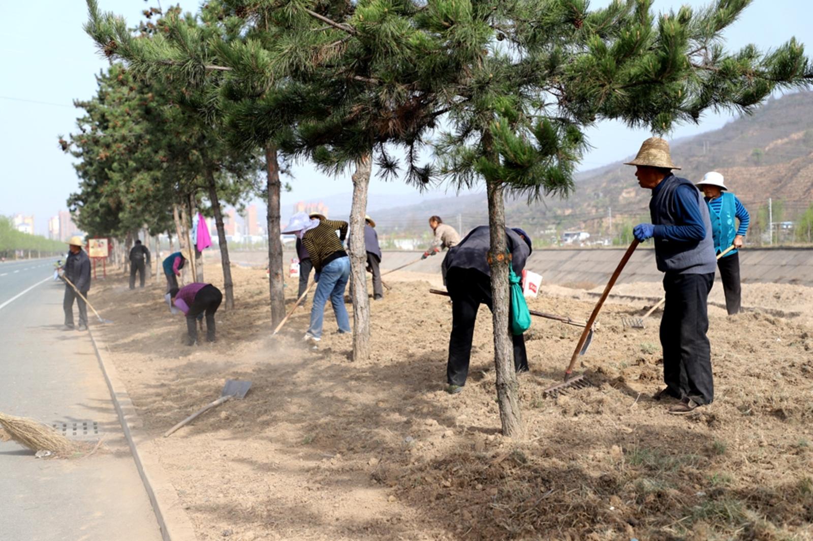 “今年温泉大道及以上路肩整修绿化由我们永清镇承包绿化,全程8公里,路肩整理这段时间每天投入劳力30多人,准备五一期间种植花卉。”永清镇东关村党支部书记乔志宏说。