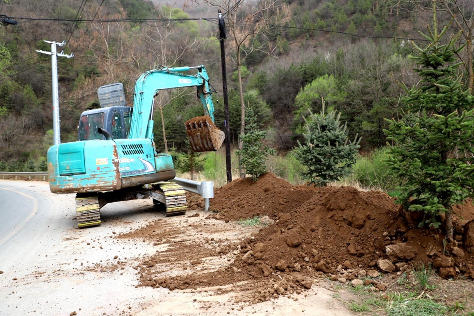 在温泉大道及汤峪温泉段,路肩整修采取“人工+机械”的方式,整修该路段路肩,铲除边坡杂草,清理边沟的杂物、垃圾、堆积物,现场井然有序。