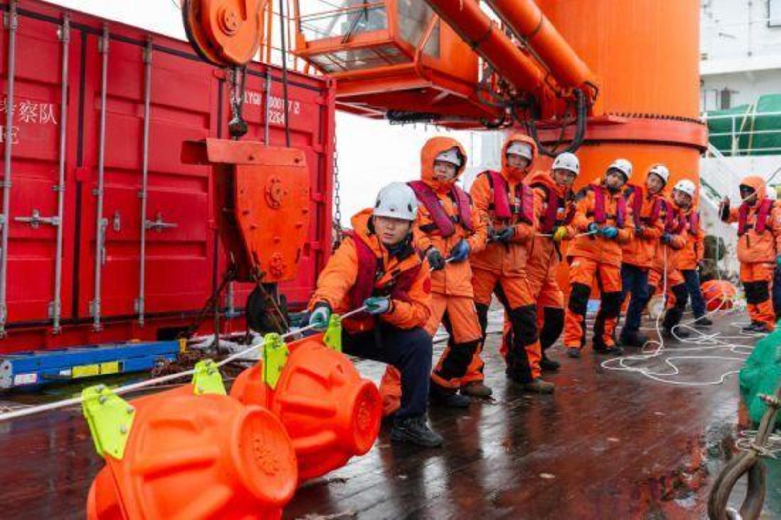 1月6日,中国第40次南极考察队在阿蒙森海成功布放深水生态潜标,这也是中国首次在极地布放生态潜标。新华社记者周圆摄