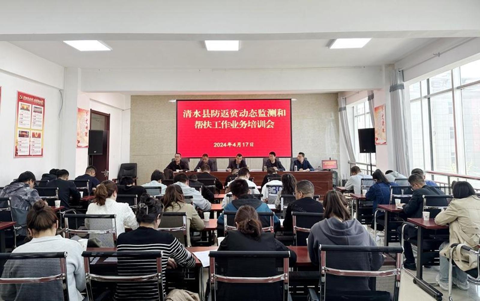 新天水讯 据清水县融媒体中心消息 4月17日,清水县组织召开防返贫动态监测和帮扶工作业务培训会,县乡村振兴局班子成员、各乡镇乡村振兴专职副站长及业务骨干参加会议。