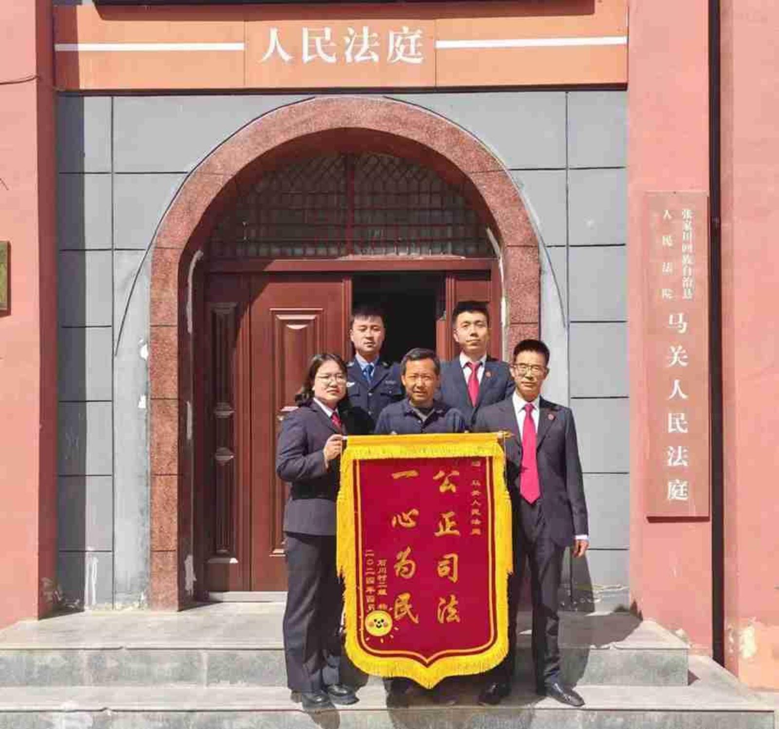 新天水讯 4月18日,杨某将一面印有“公正司法,一心为民”八个大字的锦旗送到了张家川县人民法院马关法庭法官手中,以表达在法官调解下,终于解决了拖欠长达5年之久劳务费的谢意。
