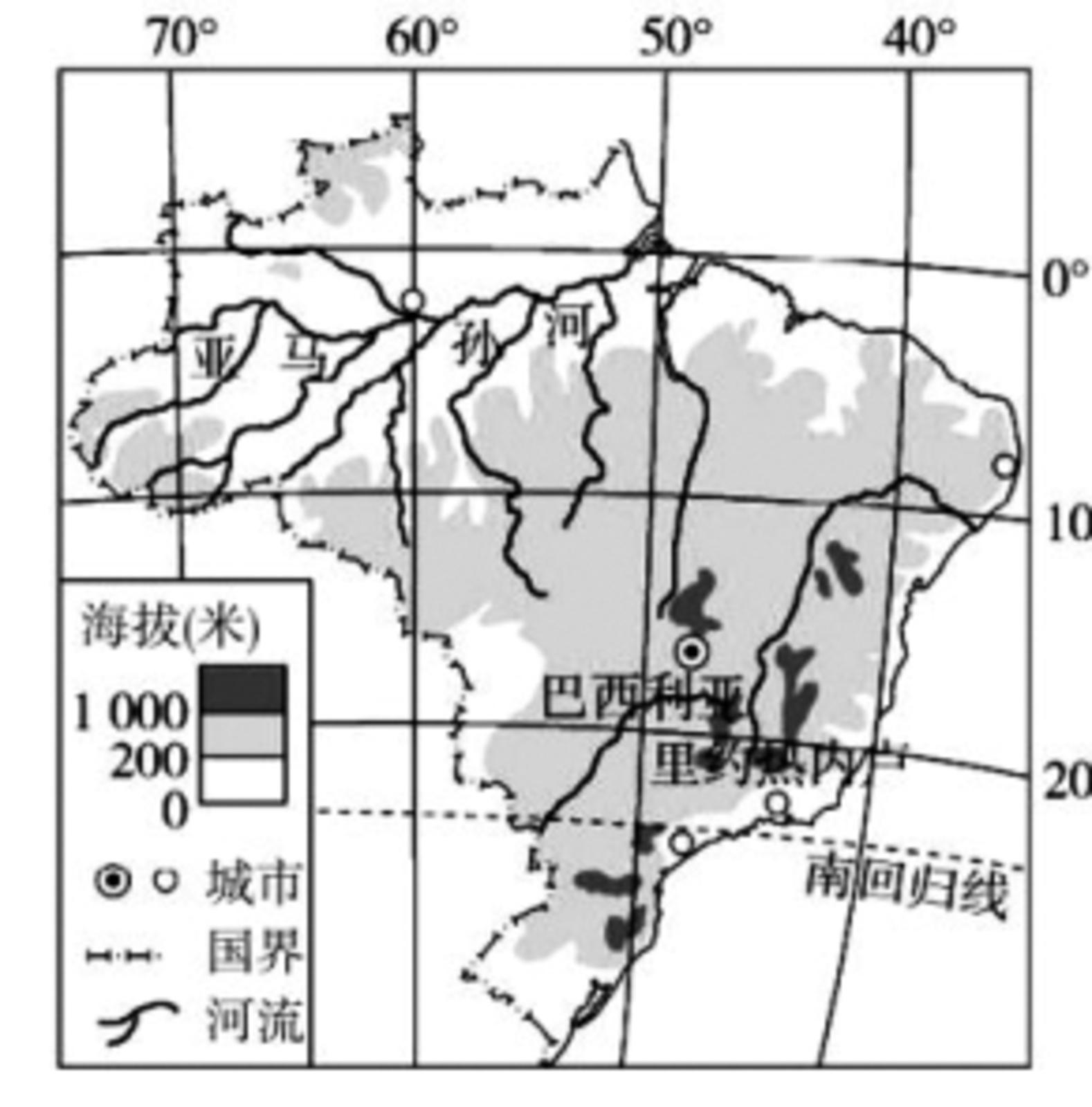 (2)(位于赤道附近)热带雨林气候,降水丰富;流域面积广大,支流众多等(任写一点,即可得分)(2分)