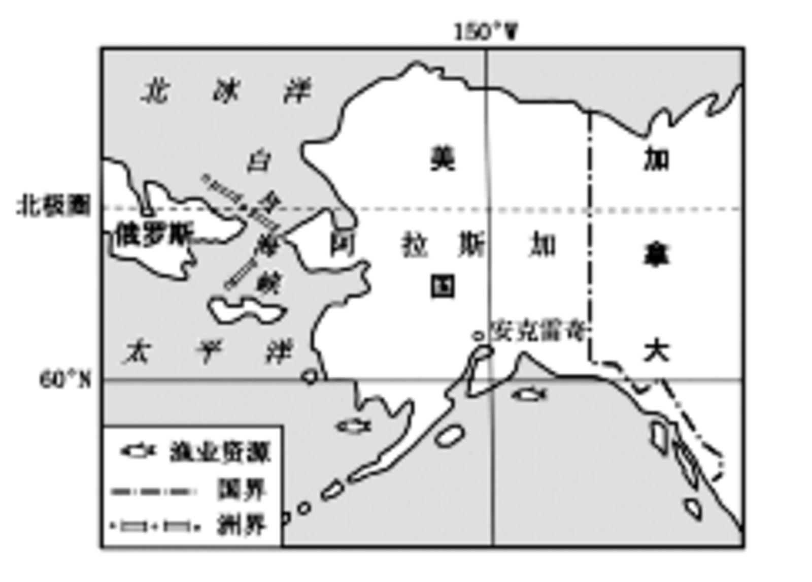 例1(2021年天水会考):应美方邀请,中美两国高层官员于3月18日至19日在美国阿拉斯加州安克雷奇举行了战略对话。上图为阿拉斯加州地理位置示意图,读图完成8—10题。