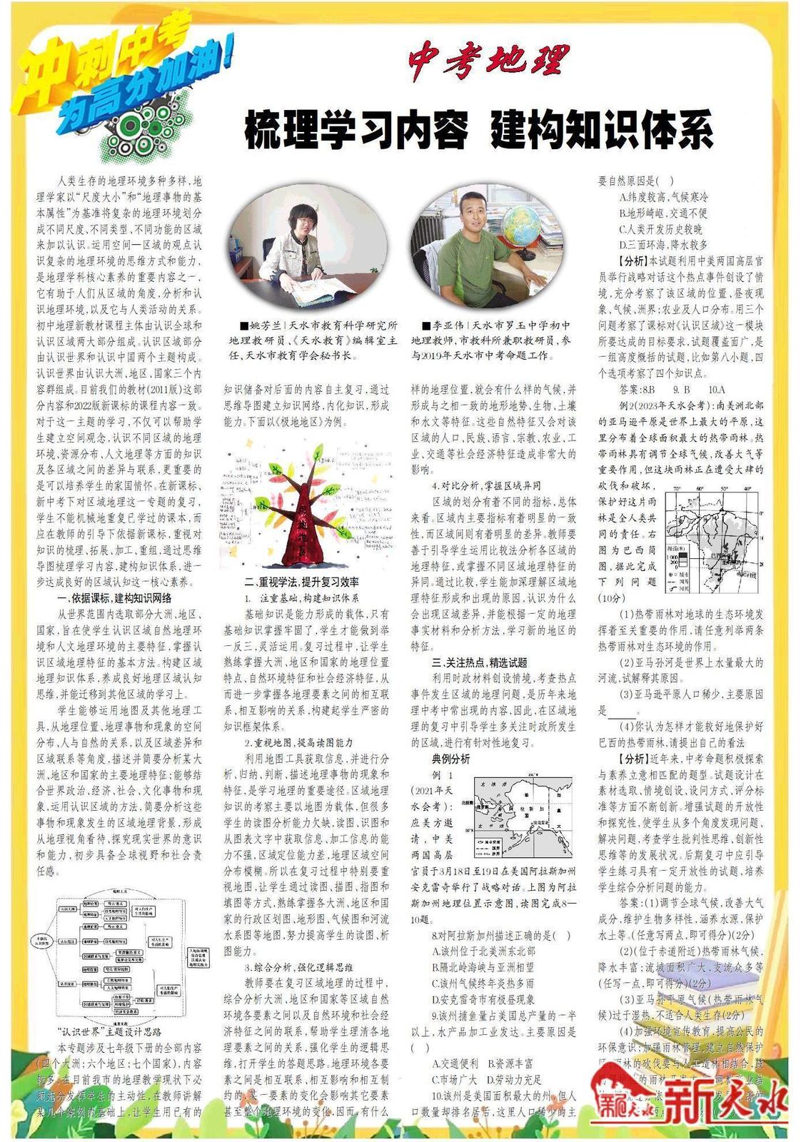 利用时政材料创设情境,考查热点事件发生区域的地理问题,是历年来地理中考中常出现的内容,因此,在区域地理的复习中引导学生多关注时政所发生的区域,进行有针对性地复习。