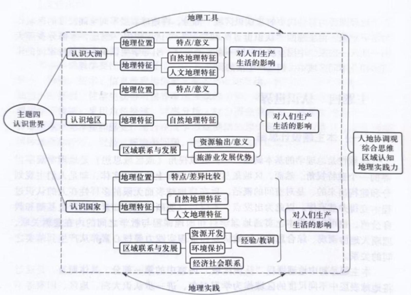 从世界范围内选取部分大洲、地区、国家,旨在使学生认识区域自然地理环境和人文地理环境的主要特征,掌握认识区域地理特征的基本方法。构建区域地理知识体系,养成良好地理区域认知思维,并能迁移到其他区域的学习上。