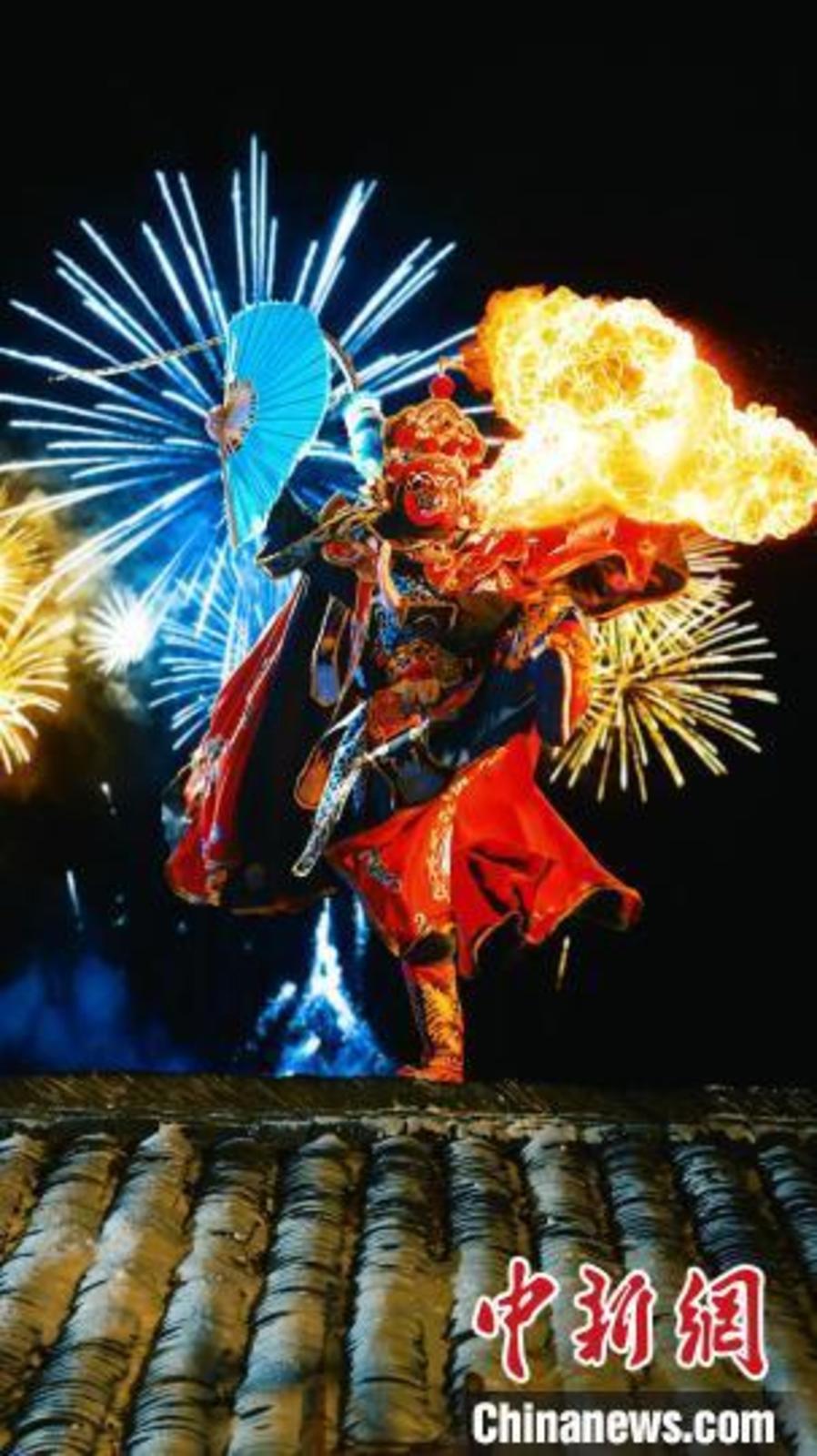 2023年1月,朱铁雄利用特效和变装表演川剧变脸。(资料图)受访者供图