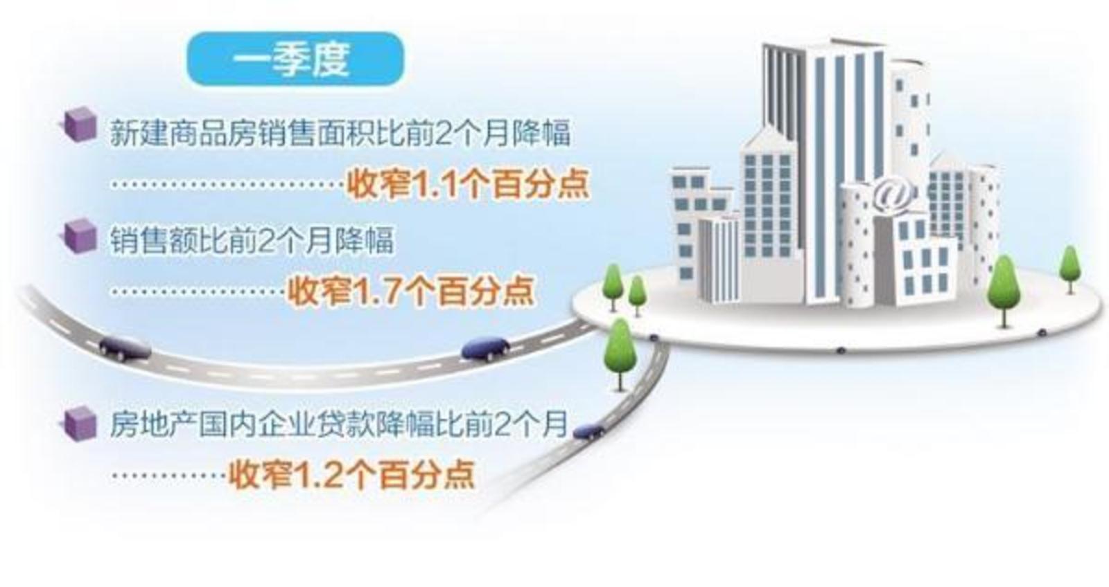 “白名单”落地对房地产融资额产生积极影响。今年以来,为了解决房地产融资难问题,有关部门推出了“白名单”融资项目支持政策。一季度,房地产国内企业贷款降幅比前2个月收窄了1.2个百分点。