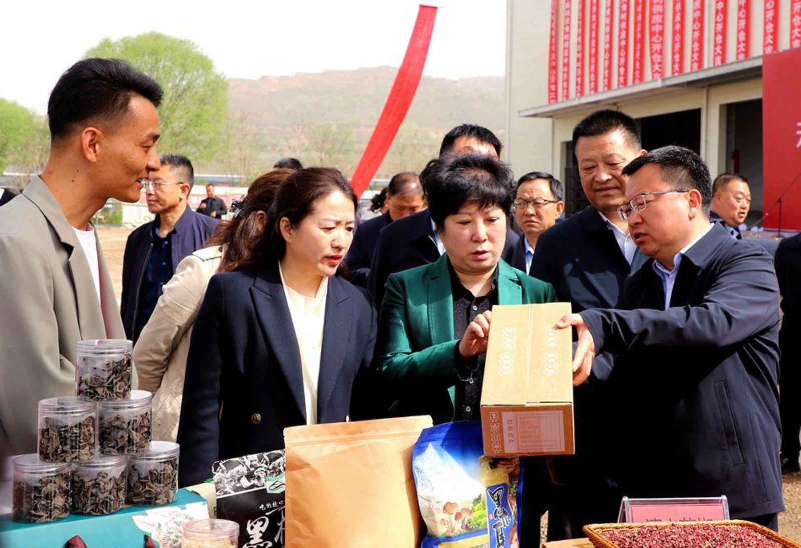 天水市商务局党组书记、局长胡爱文,清水县委书记李菊霞为天水麻辣烫食材供应中心揭牌。
