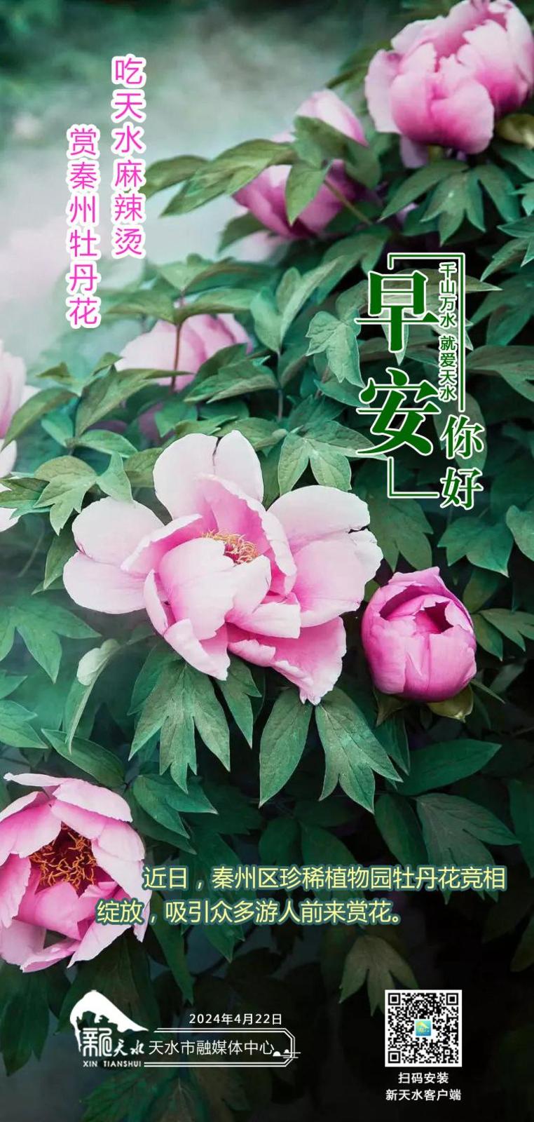 【问候海报】4月22日丨吃天水麻辣烫 赏秦州牡丹花