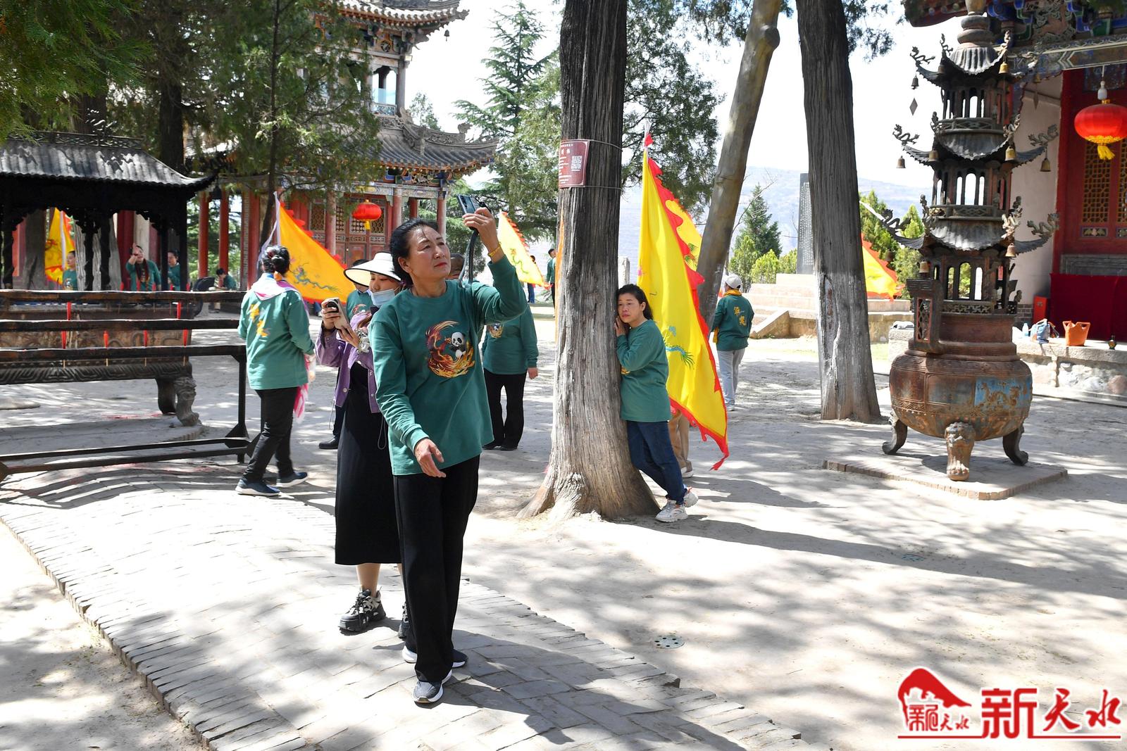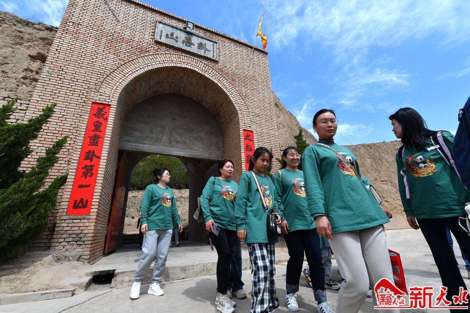 4月22日,游客在麦积区卦台山景区游玩。连日来,我市各旅游景区都迎来了客流高峰,全市上下抢抓天水麻辣烫火爆流量开展的系列丰富多彩的活动为天水带来了蓬勃的人气,激发了文旅消费新活力。(新天水记者 周文涛 摄)