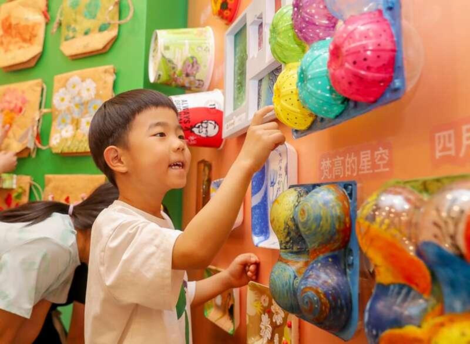 小朋友对变废为宝的环保作品很感兴趣。受访者 供图
