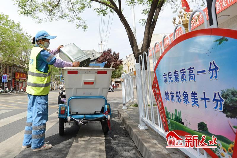 荣获“甘肃省工人先锋号”荣誉称号的天水京环环境服务有限公司麦积作业中心桥北片区五组的环卫工人在进行路段保洁工作。
