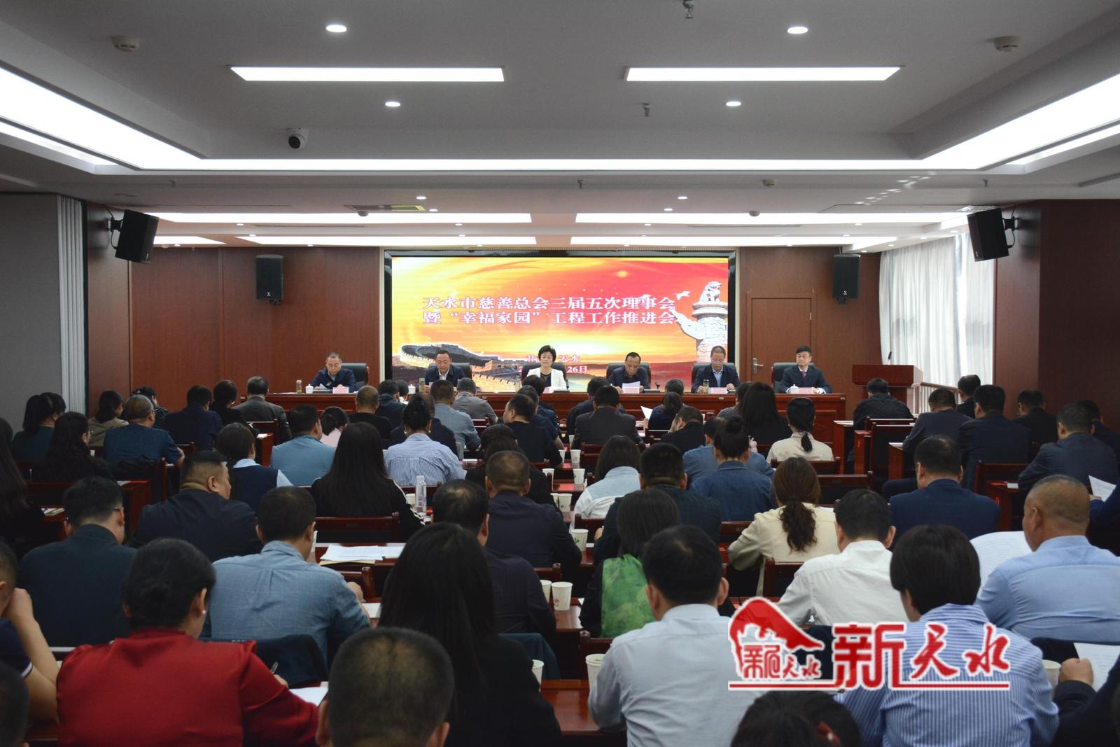 会上,传达了市委书记冯文戈,市委副书记、市长王国先对全市慈善工作的批示;表彰奖励了2023年度全市慈善工作和助力积石山灾害救助突出贡献企业、先进企业、先进单位和先进个人;听取了《天水市慈善总会三届五次理事会暨幸福家园工程工作推进会工作报告》和《天水市慈善总会三届五次理事会财务工作报告》;审议通过了两个报告及《天水市慈善总会三届五次理事会理事、常务理事人员变动说明》《天水市慈善总会章程(草案)修改情况说明》和《天水市慈善总会关于全面开展募捐和捐赠工作努力推动天水慈善事业高质量发展实施方案》。