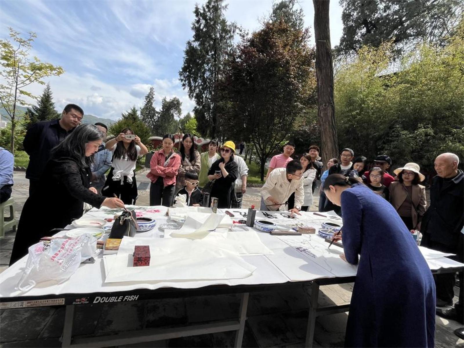 新天水讯 据秦州区融媒体中心5月2日消息 5月1日,玉泉景区“庆五一 游天水 吃麻辣烫 送书画” 活动如期举办。五一劳动节前来观赏书画创作的部分游客免费拿到了一幅自己心仪的作品。