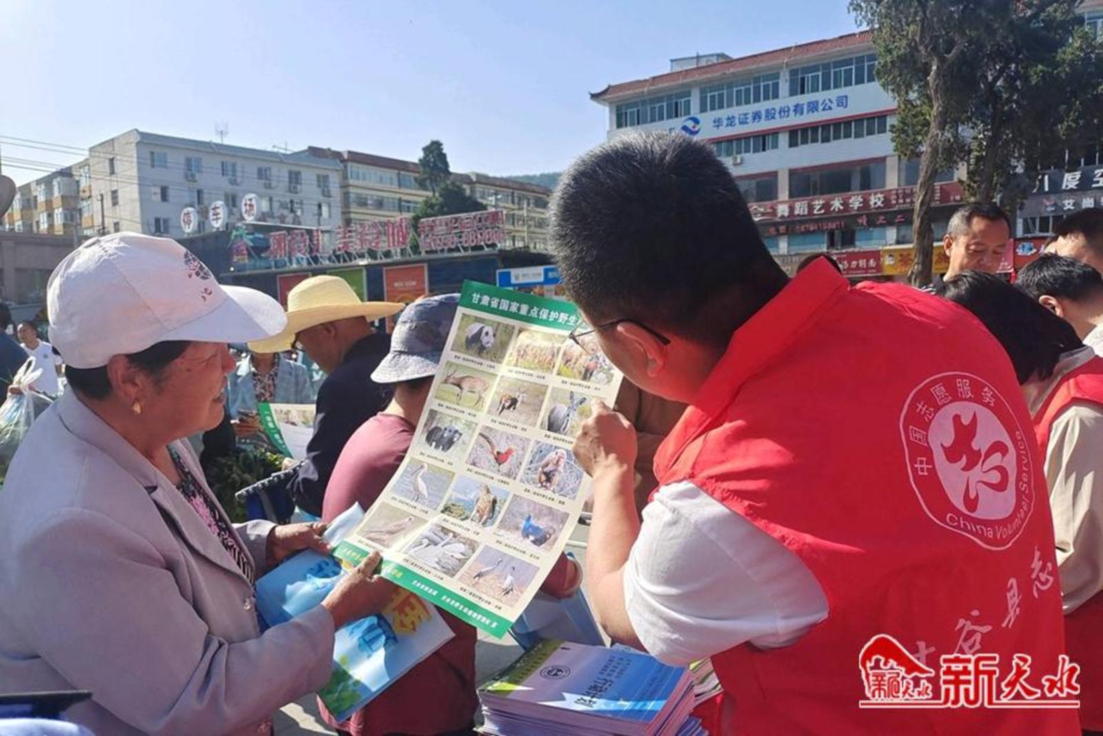 在活动现场,工作人员通过现场答疑、展板宣传、发放宣传资料和环保购物袋等方式,向群众宣传生物多样性保护对生态系统的重要性,增强社会公众对生物多样性的保护意识,营造共同参与的社会氛围,推动甘谷县生物多样性保护和生态文明建设工作迈上新台阶。