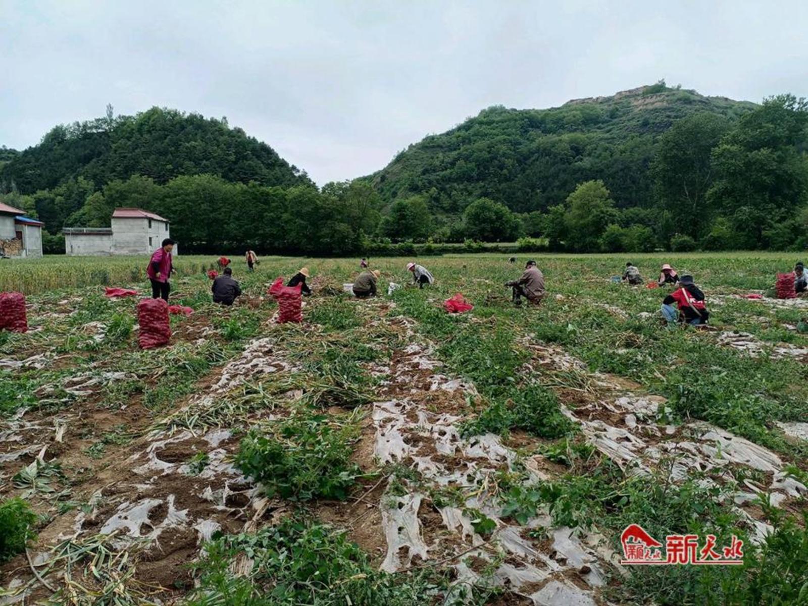 新天水讯 日前,秦州区大门镇300余亩大蒜进入收获季,广大群众正抢抓晴天有利时间采收大蒜。在田间地头,只见蒜农熟练地挖蒜、抖土、剪蒜、装袋,一颗颗紫皮新鲜大蒜被装袋后摆放在田地上,浓浓的蒜香扑鼻而来,呈现出一派繁忙景象。