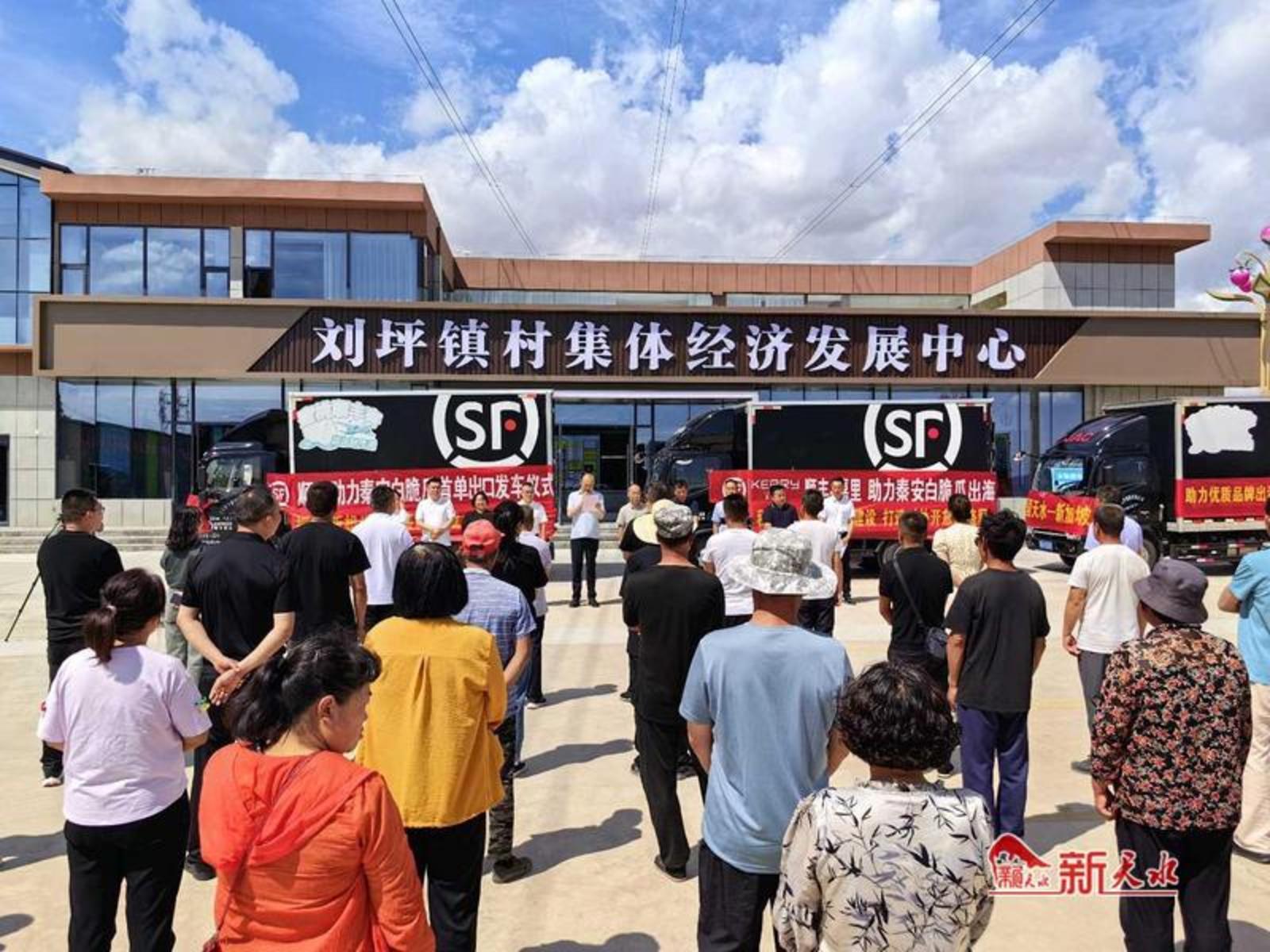 新天水讯【记者范少杰】7月3日,秦安白脆瓜出口新加坡发车仪式在秦安县刘坪镇电商直播基地举行。