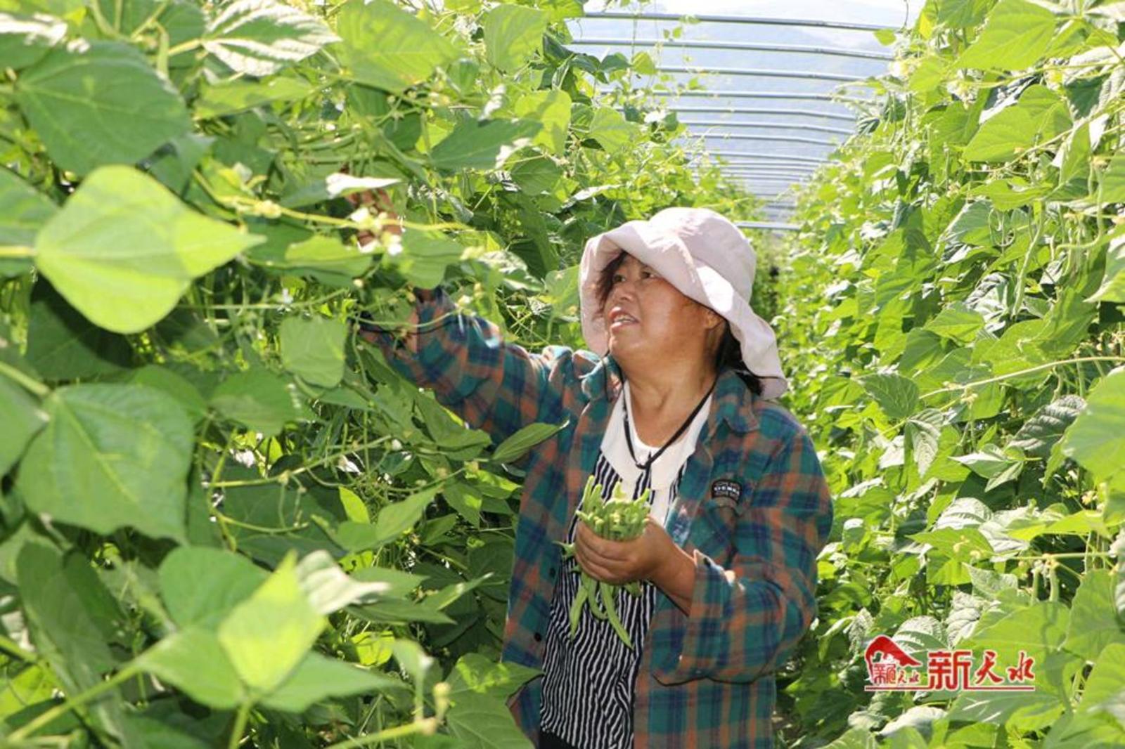 新天水讯【通讯员董世雄 李波 马菁菁】夏至过后,架豆逐渐成熟。在武山县马力镇,这里又长又直的架豆也到了采收季节,农民们手脚麻利地把成熟的豆角采摘下来,抢占市场先机,争取卖上好价钱。