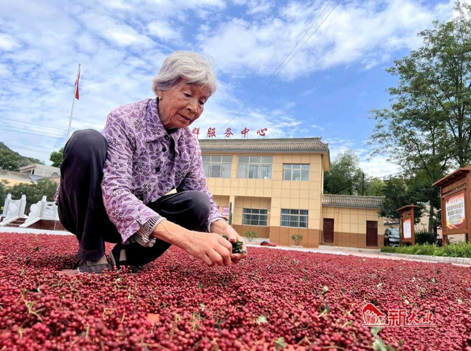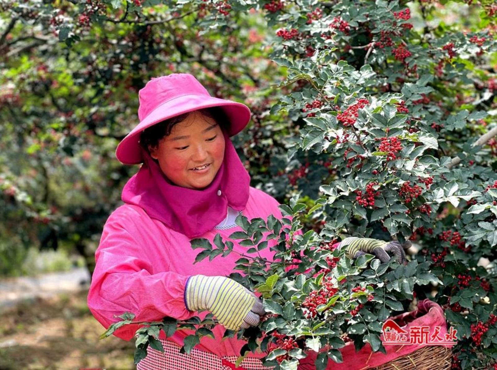 新天水讯【通讯员何乐 刘亮 宋佳佳】又是一年丰收季,万亩椒园吐异香。眼下,甘谷县花椒陆续成熟进入采摘期,漫山遍野的花椒树上挂满了颗粒饱满“致富果”,果实压枝的成片椒林下,喜上眉梢的群众正忙着剪枝摘椒。