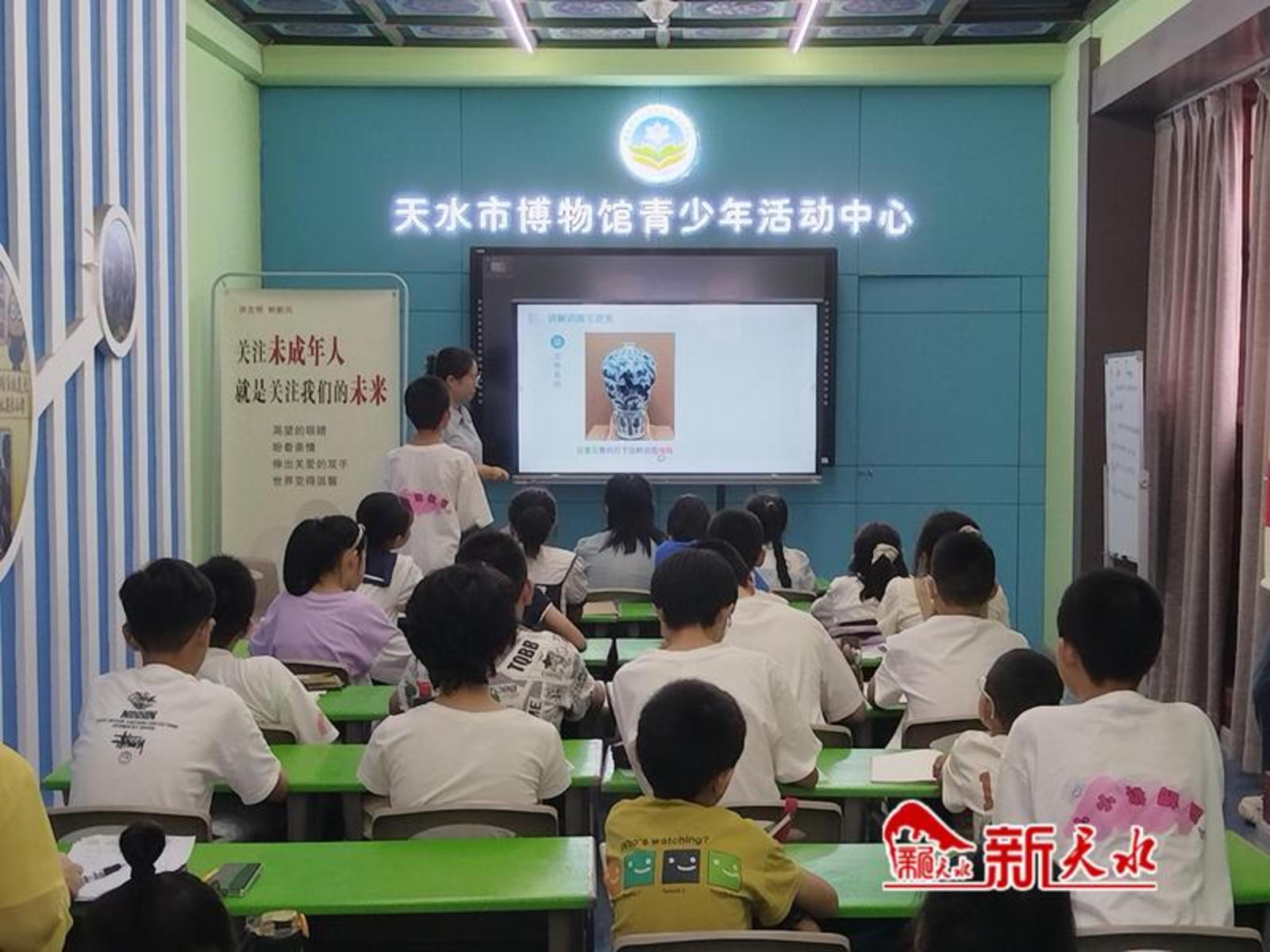“您所看到的这件瓷壶出土于秦州区,瓷壶口径为9.5厘米,高22.1厘米……”7月23日,在天水市博物馆青少年活动中心,参加天水市博物馆“传承历史,讲述文明”——暑期小小讲解员培训班活动的孩子们,就如何根据展品特征和观众特点撰写好讲解稿与宣教老师进行互动。孩子们一边认真聆听,一边记着笔记。