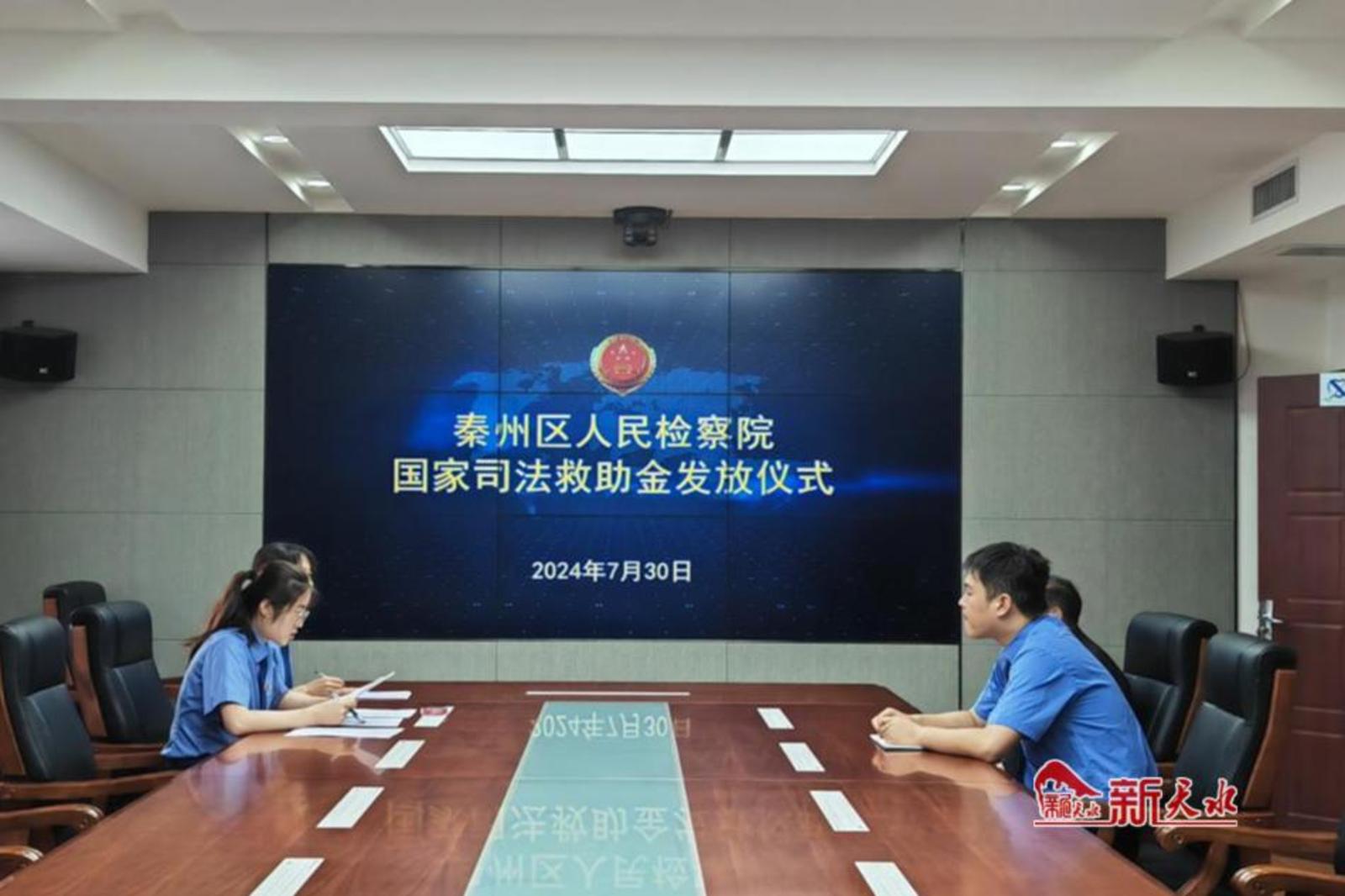 新天水讯 7月30日,秦州区人民检察院举行司法救助金发放仪式,为案件被害人刘某甲儿子刘某某一次性发放了国家司法救助金。