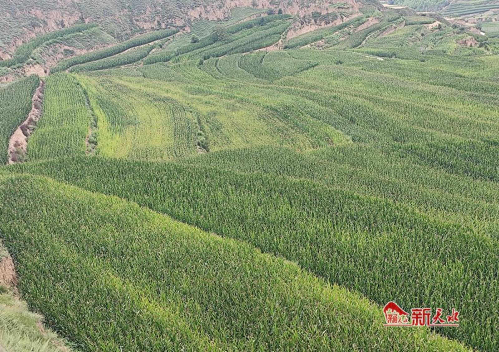 新天水讯 田野皆铺翠绿青,万亩良田书瑞景。时下,走进甘谷县礼辛镇一株株玉米在微风中摇曳,株株茁壮,犹如一幅美丽的诗情画卷,一块块农田里孕育着丰收的希望,书写出了今年的丰收景象。